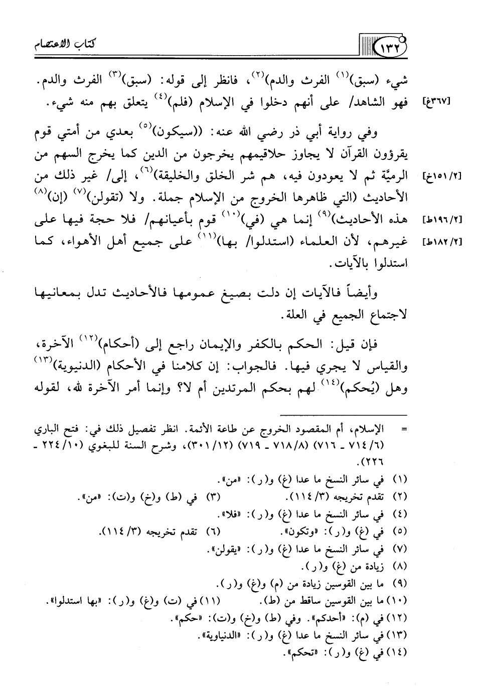 =الإسلام، أم المقصود الخروج عن طاعة الأئمة. انظر تفصيل ذلك في: فتح الباري (6 714 ـ 716) (8 718 ـ 719) (12 301)، وشرح السنة للبغوي (10 224 ـ 226).