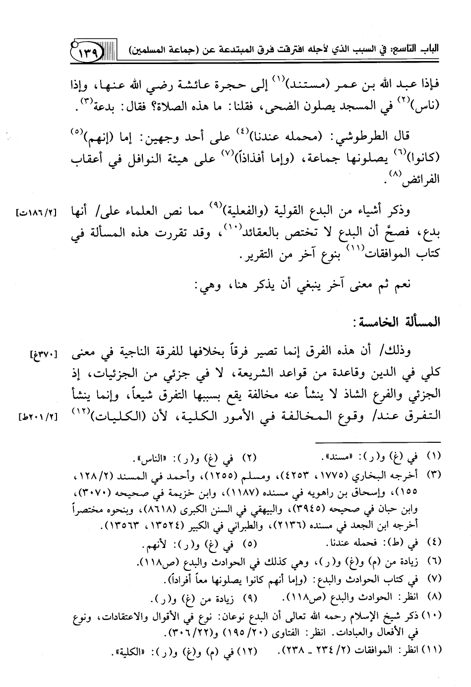 (¬7) في كتاب الحوادث والبدع: (وإما أنهم كانوا يصلونها معاً أفراداً).