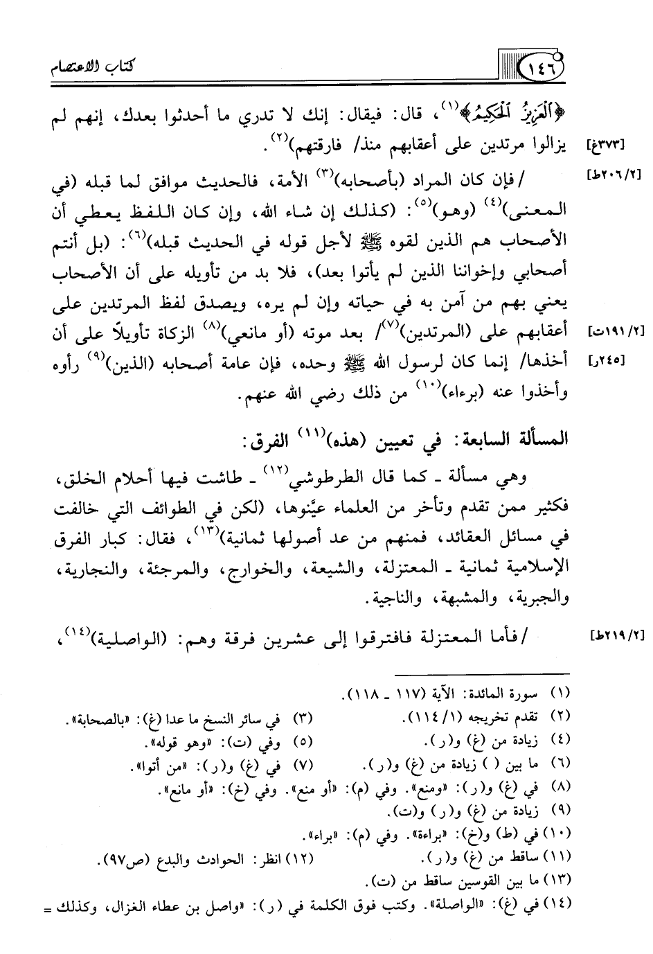 (¬14) في (غ): "الواصلة". وكتب فوق الكلمة في (ر): "واصل بن عطاء الغزال، وكذلك=