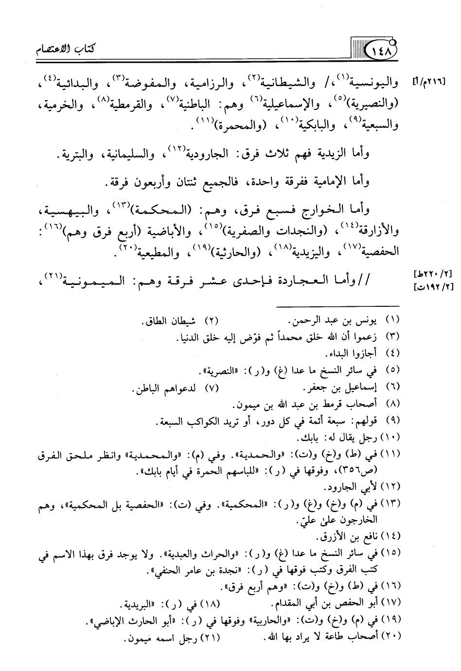 (¬15) في سائر النسخ ما عدا (غ) و (ر): "والحراث والعبدية". ولا يوجد فرق بهذا الاسم في كتب الفرق وكتب فوقها في (ر): "نجدة بن عامر الحنفي".