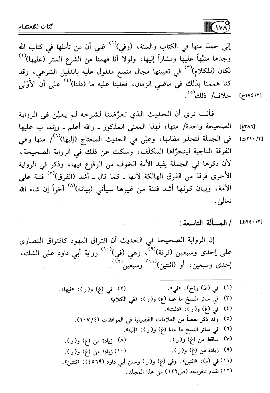 إِنَّ الرِّوَايَةَ الصَّحِيحَةَ فِي الْحَدِيثِ أَنَّ افْتِرَاقَ الْيَهُودِ كَافْتِرَاقِ النَّصَارَى عَلَى إِحْدَى وسبعين (فرقة) (¬9)، وَهِيَ (فِي) (¬10) رِوَايَةِ أَبِي دَاوُدَ عَلَى الشَّكِّ، إحدى وسبعين، أو (اثنتين) (¬11) وسبعين (¬12).