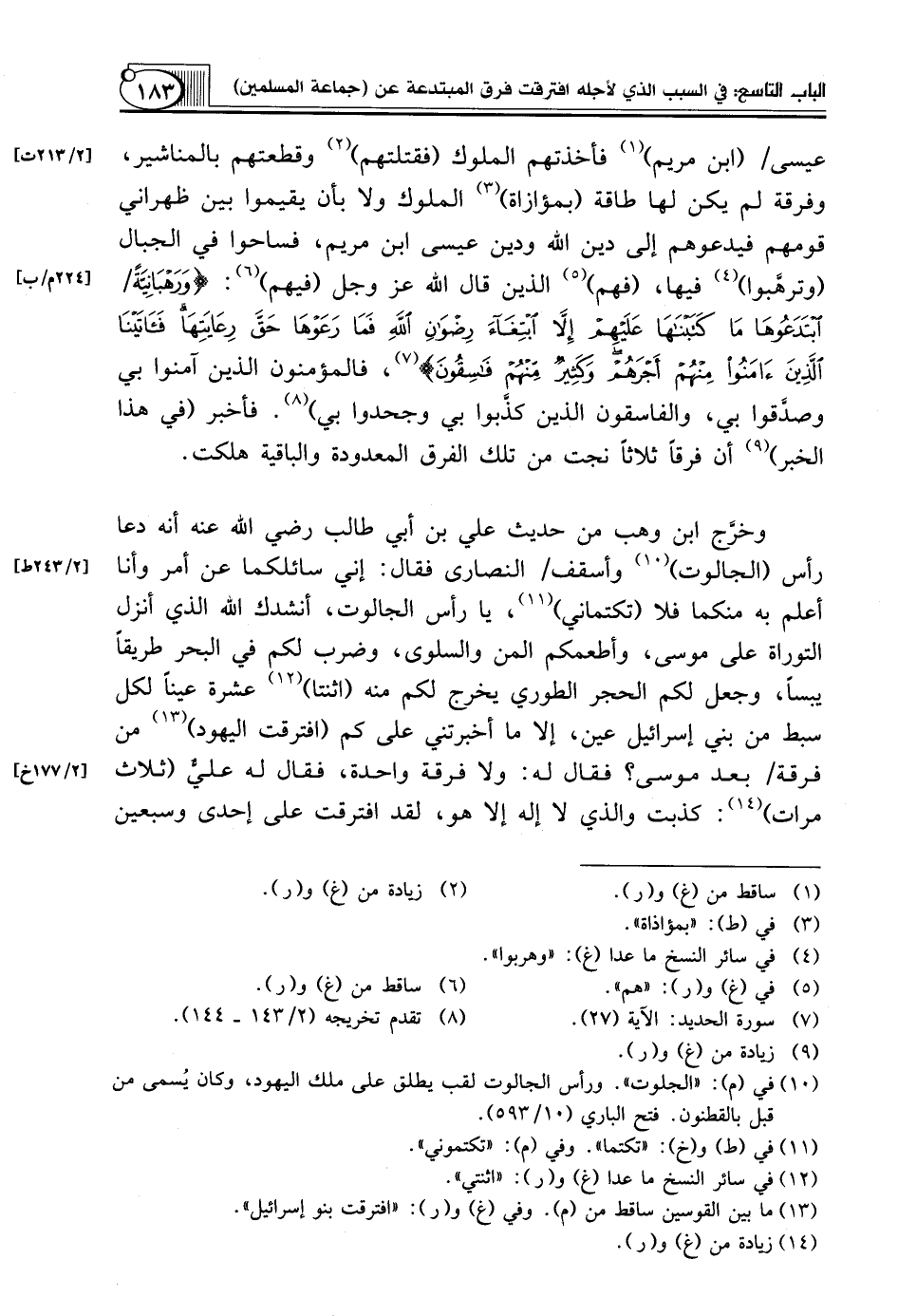 (¬13) ما بين القوسين ساقط من (م). وفي (غ) و (ر): "افترقت بنو إسرائيل".