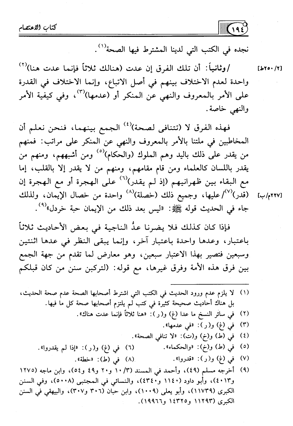 /وَثَانِيًا: أَنَّ تِلْكَ الْفِرَقَ إِنْ عُدَّتْ (هنالك ثلاثاً فإنما عدت هنا) (¬2) وَاحِدَةً لِعَدَمِ الِاخْتِلَافِ بَيْنَهُمْ فِي أَصْلِ الِاتِّبَاعِ، وَإِنَّمَا الِاخْتِلَافُ فِي الْقُدْرَةِ عَلَى الْأَمْرِ بِالْمَعْرُوفِ وَالنَّهْيِ عَنِ الْمُنْكَرِ أَوْ (عَدَمِهَا) (¬3)، وَفِي كَيْفِيَّةِ الأمر والنهي خاصة.