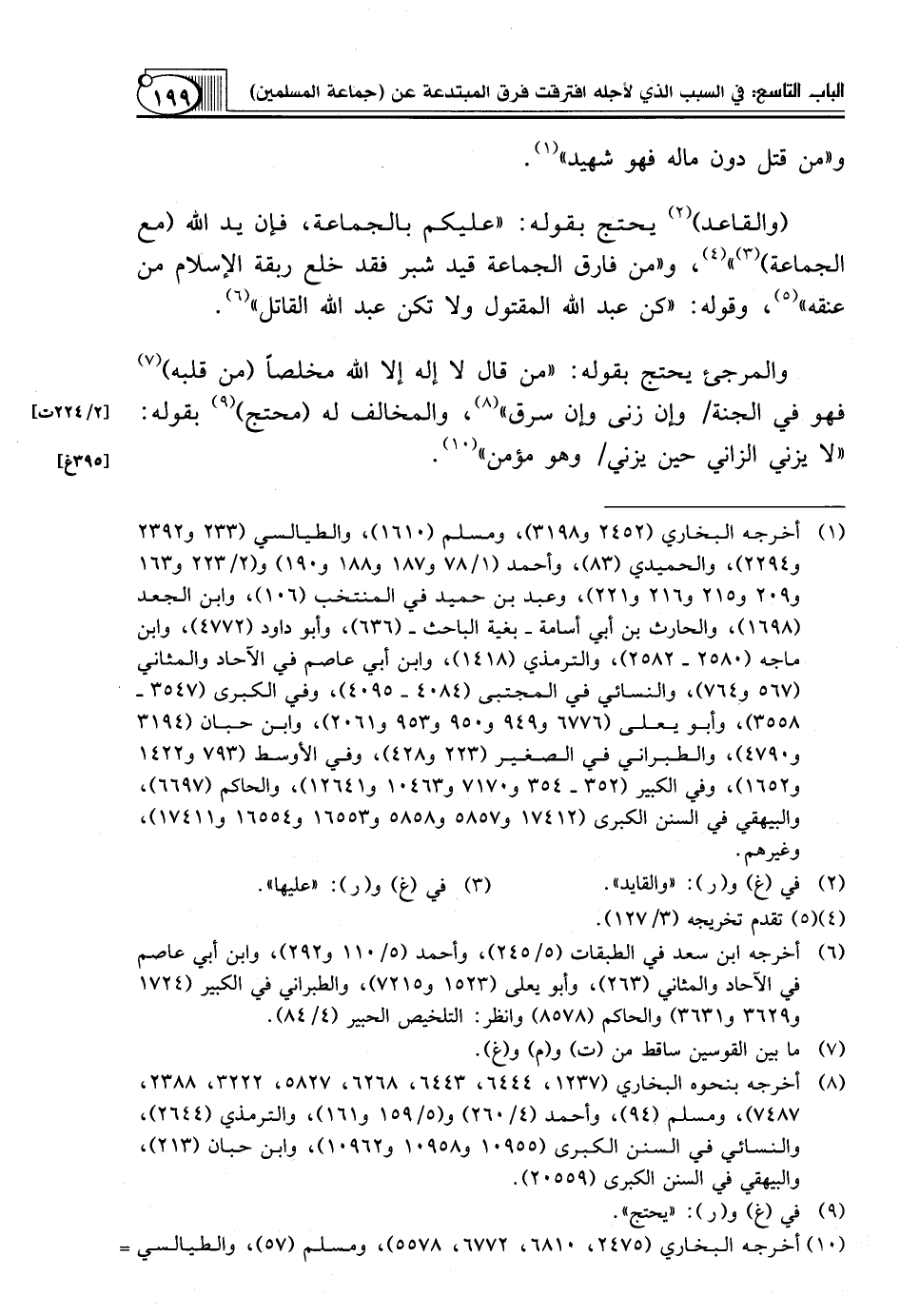 (¬1) أخرجه البخاري (2452 و3198)، ومسلم (1610)، والطيالسي (233 و2392 و2294)، والحميدي (83)، وأحمد (1 78 و187 و188 و190) و (2 223 و163 و209 و215 و216 و221)، وعبد بن حميد في المنتخب (106)، وابن الجعد (1698)، والحارث بن أبي أسامة ـ بغية الباحث ـ (636)، وأبو داود (4772)، وابن ماجه (2580 ـ 2582)، والترمذي (1418)، وابن أبي عاصم في الآحاد والمثاني (567 و764)، والنسائي في المجتبى (4084 ـ 4095)، وفي الكبرى (3547 ـ 3558)، وأبو يعلى (6776 و949 و950 و953 و2061)، وابن حبان (3194 و4790)، والطبراني في الصغير (223 و428)، وفي الأوسط (793 و1422 و1652)، وفي الكبير (352 ـ 354 و7170 و10463 و12641)، والحاكم (6697)، والبيهقي في السنن الكبرى (17412 و5857 و5858 و16553 و16554 و17411)، وغيرهم.