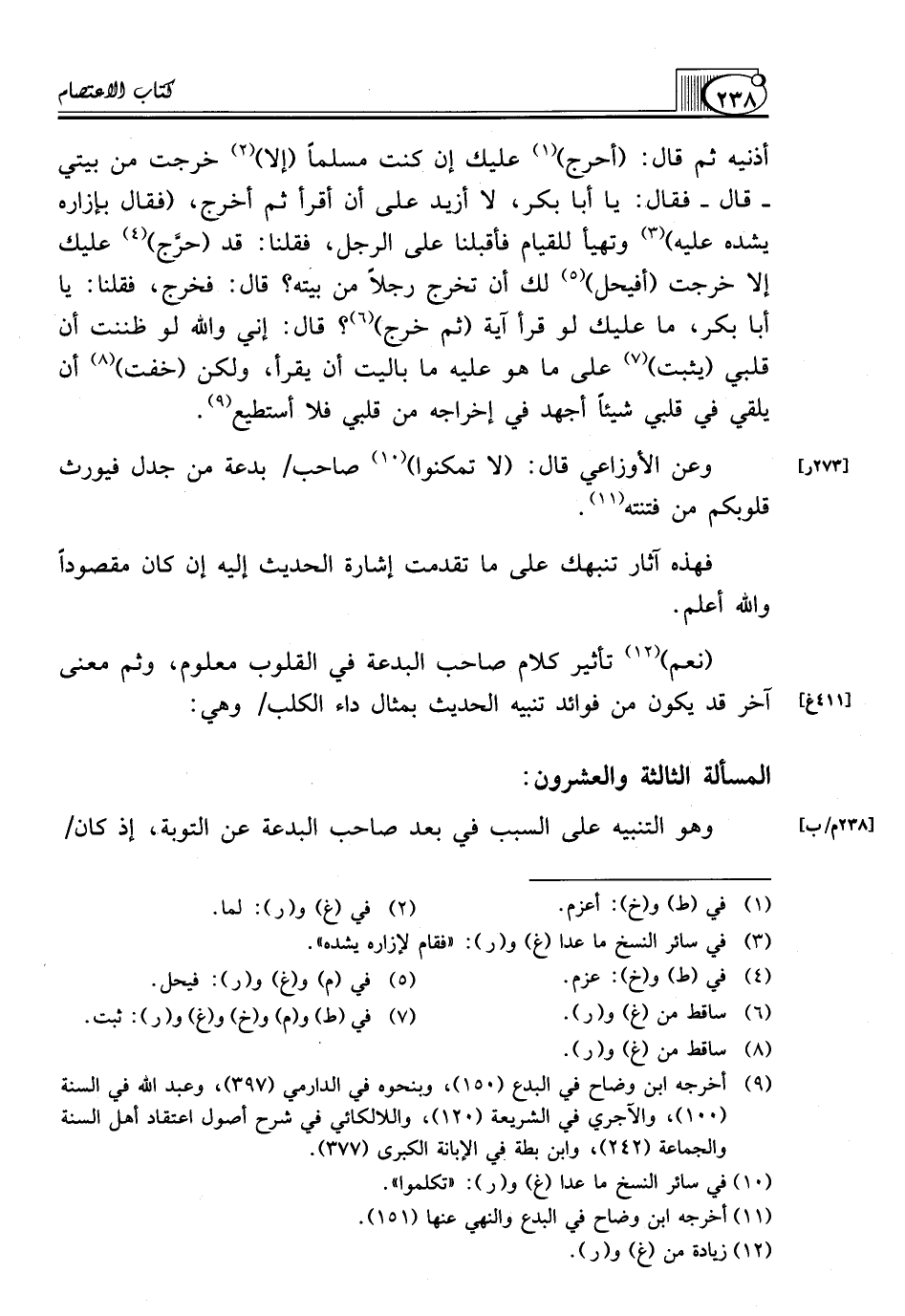 (¬9) أخرجه ابن وضاح في البدع (150)، وبنحوه في الدارمي (397)، وعبد الله في السنة (100)، والآجري في الشريعة (120)، واللالكائي في شرح أصول اعتقاد أهل السنة والجماعة (242)، وابن بطة في الإبانة الكبرى (377).