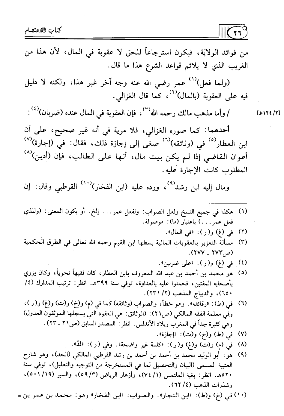 (وَلِمَا فَعَلَ) (¬1) عُمَرُ رَضِيَ اللَّهُ عَنْهُ وَجْهٌ آخَرُ غَيْرُ هَذَا، وَلَكِنَّهُ لَا دَلِيلَ فِيهِ عَلَى الْعُقُوبَةِ (بِالْمَالِ) (¬2)، كَمَا قَالَ الْغَزَالِيُّ.