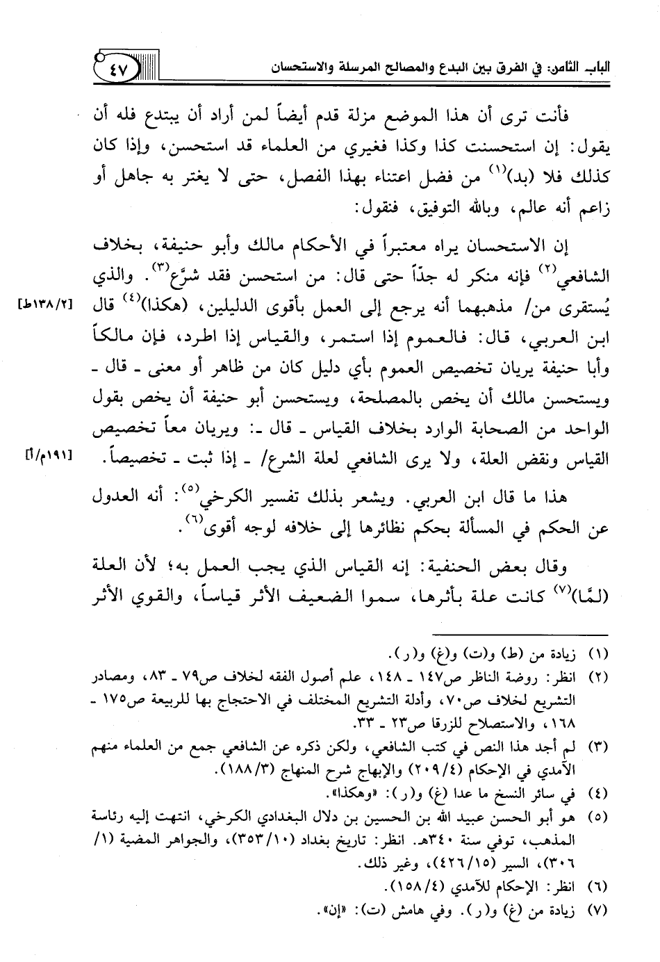فَأَنْتَ تَرَى أَنَّ هَذَا الْمَوْضِعَ مَزَلَّةُ قَدَمٍ أَيْضًا لِمَنْ أَرَادَ أَنْ يَبْتَدِعَ فَلَهُ أَنْ يَقُولَ: إِنِ اسْتَحْسَنْتُ كَذَا وَكَذَا فَغَيْرِي مِنَ الْعُلَمَاءِ قَدِ اسْتَحْسَنَ، وَإِذَا كَانَ كَذَلِكَ فَلَا (بُدَّ) (¬1) مِنْ فَضْلِ اعْتِنَاءٍ بِهَذَا الْفَصْلِ، حَتَّى لَا يَغْتَرَّ بِهِ جَاهِلٌ أَوْ زَاعِمٌ أَنَّهُ عَالَمٌ، وَبِاللَّهِ التَّوْفِيقُ، فَنَقُولُ: