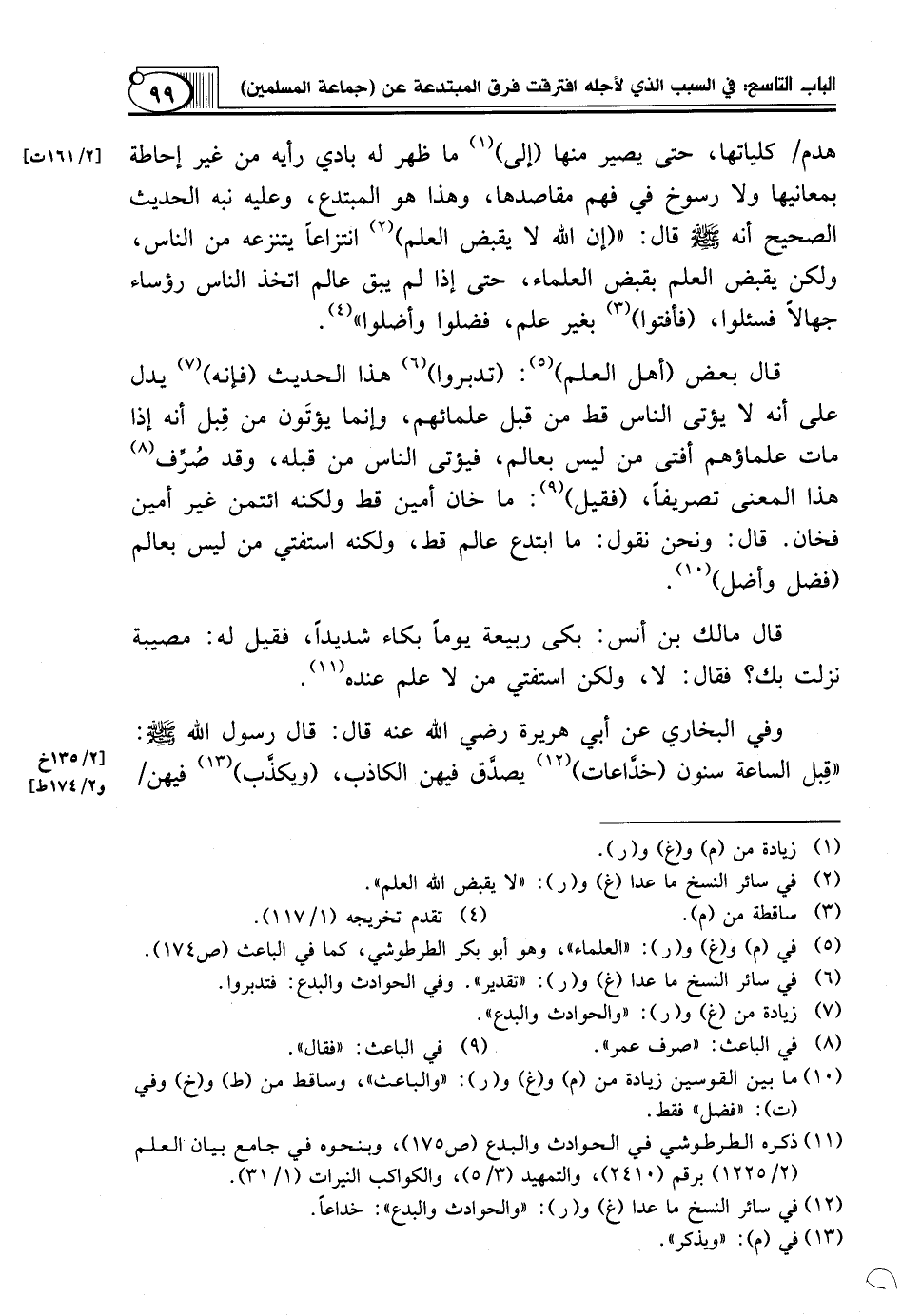 (¬5) في (م) و (غ) و (ر): "العلماء"، وهو أبو بكر الطرطوشي، كما في الباعث (ص174).