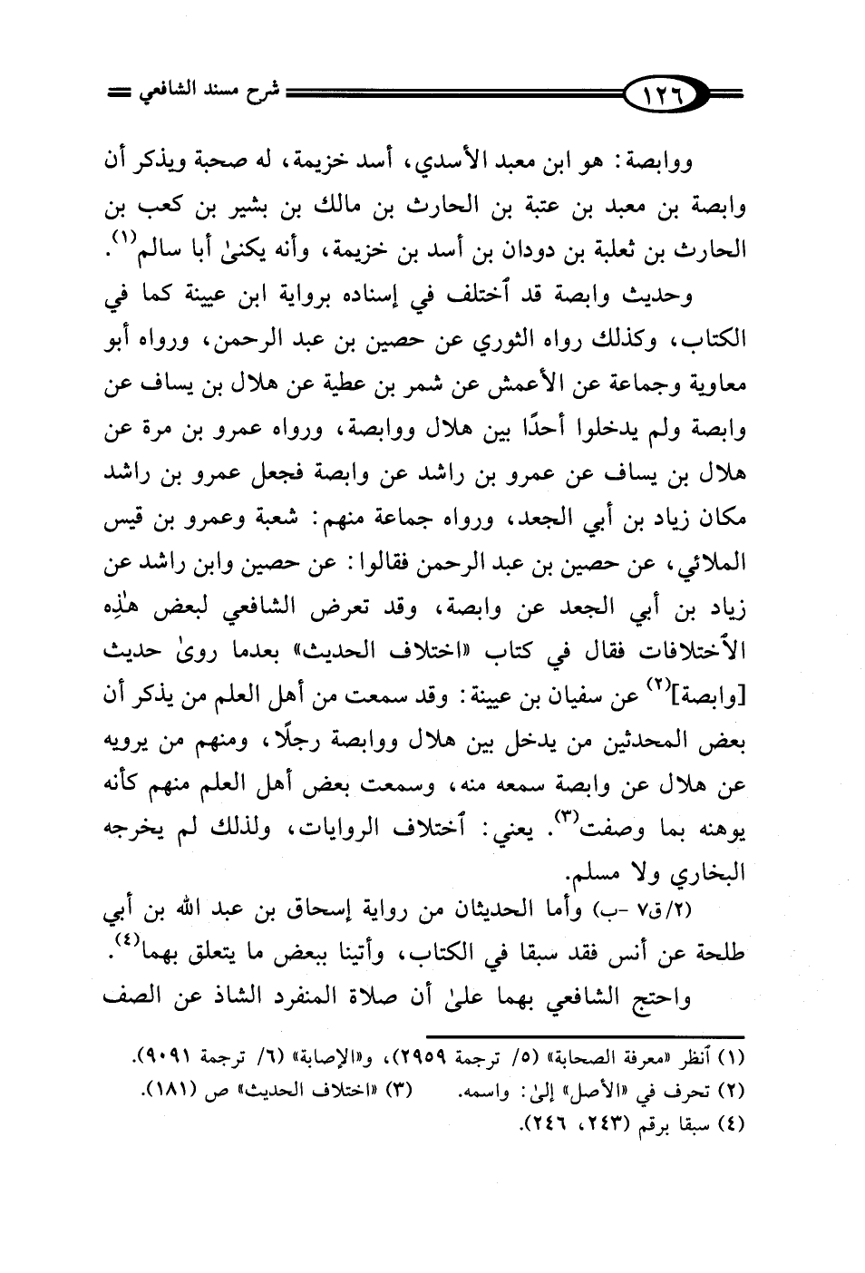 وحديث وابصة قد اختلف في إسناده برواية ابن عيينة كما في الكتاب، وكذلك رواه الثوري عن حصين بن عبد الرحمن، ورواه أبو معاوية وجماعة عن الأعمش عن شمر بن عطية عن هلال بن يساف عن وابصة ولم يدخلوا أحدًا بين هلال ووابصة، ورواه عمرو بن مرة عن هلال بن يساف عن عمرو بن راشد عن وابصة فجعل عمرو بن راشد مكان زياد بن أبي الجعد، ورواه جماعة منهم: شعبة وعمرو بن قيس الملائي، عن حصين بن عبد الرحمن فقالوا: عن حصين وابن راشد عن زياد بن أبي الجعد عن وابصة، وقد تعرض الشافعي لبعض هذِه الاختلافات فقال في كتاب "اختلاف الحديث" بعدما روى حديث [وابصة] (¬2) عن سفيان بن عيينة: وقد سمعت من أهل العلم من يذكر أن بعض المحدثين من يدخل بين هلال ووابصة رجلًا، ومنهم من يرويه عن هلال عن وابصة سمعه منه، وسمعت بعض أهل العلم منهم كأنه يوهنه بما وصفت (¬3). يعني: اختلاف الروايات، ولذلك لم يخرجه البخاري ولا مسلم.