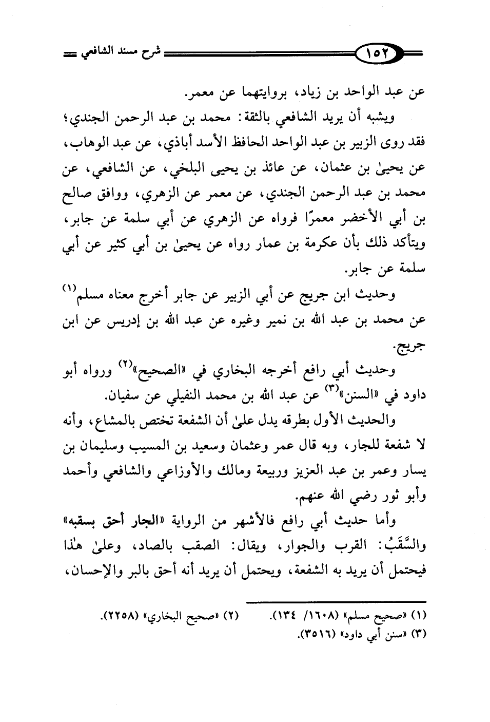 وأما حديث أبي رافع فالأشهر من الرواية "الجار أحق بسقبه" والسَّقَبُ: القرب والجوار، ويقال: الصقب بالصاد، وعلى هذا فيحتمل أن يريد به الشفعة، ويحتمل أن يريد أنه أحق بالبر والإحسان،