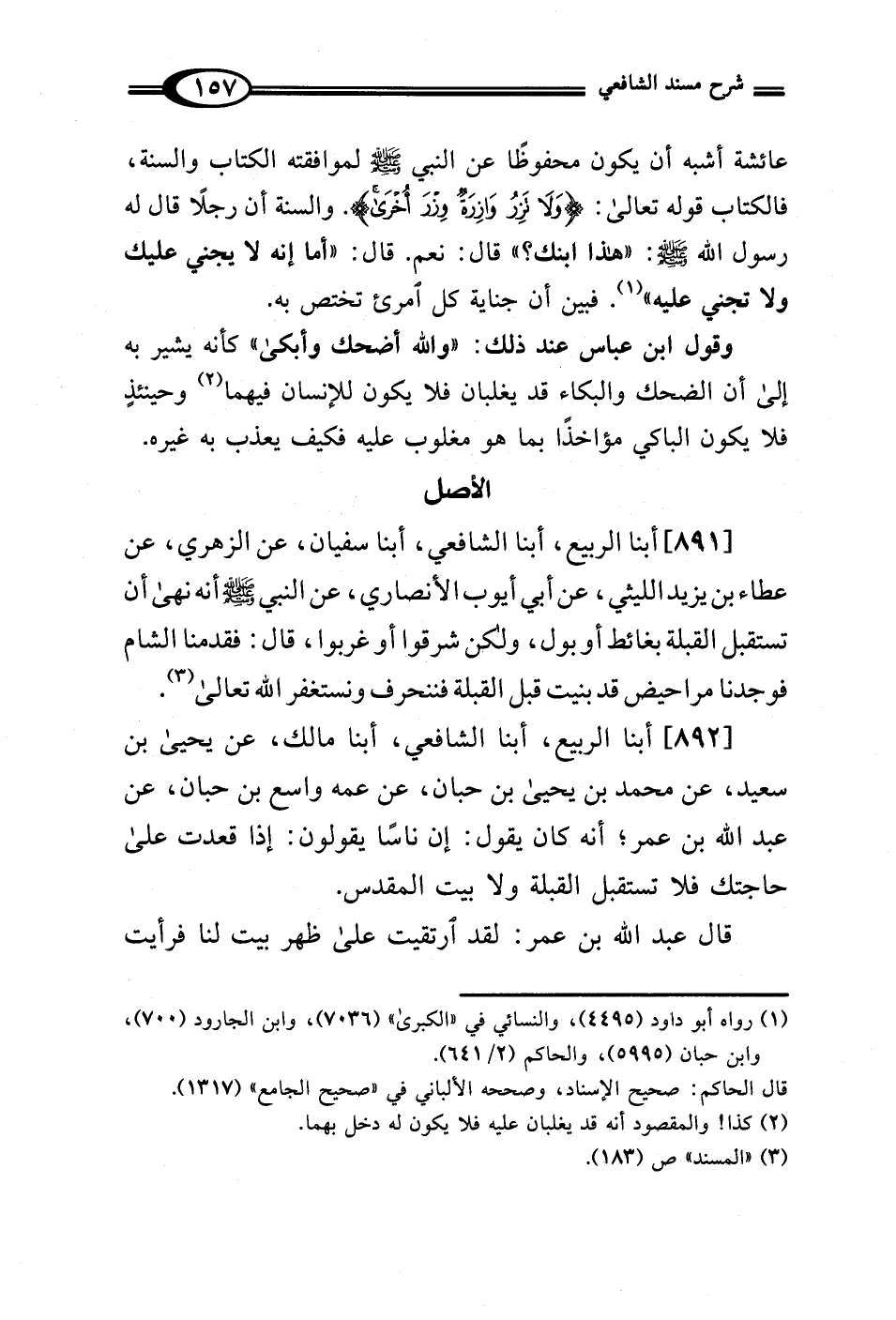[892] أبنا الربيع، أبنا الشافعي، أبنا مالك، عن يحيى بن سعيد، عن محمَّد بن يحيى بن حبان، عن عمه واسع بن حبان، عن عبد الله بن عمر؛ أنه كان يقول: إن ناسًا يقولون: إذا قعدت على حاجتك فلا تستقبل القبلة ولا بيت المقدس.