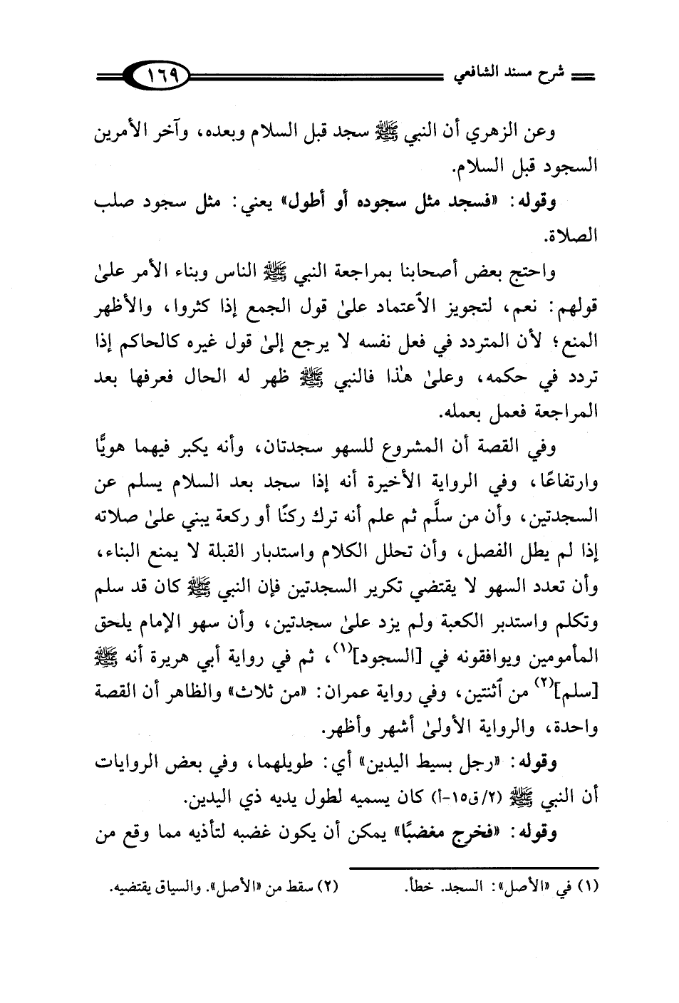 وعن الزهري أن النبي - صلى الله عليه وسلم - سجد قبل السلام وبعده، وآخر الأمرين السجود قبل السلام.