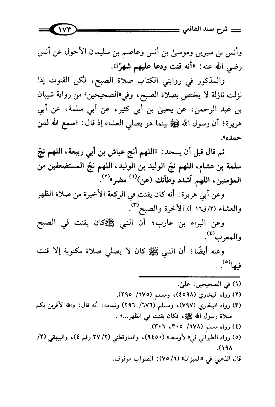 وأنس بن سيرين وموسى بن أنس وعاصم بن سليمان الأحول عن أنس رضي الله عنه: "أنه قنت ودعا عليهم شهرًا".