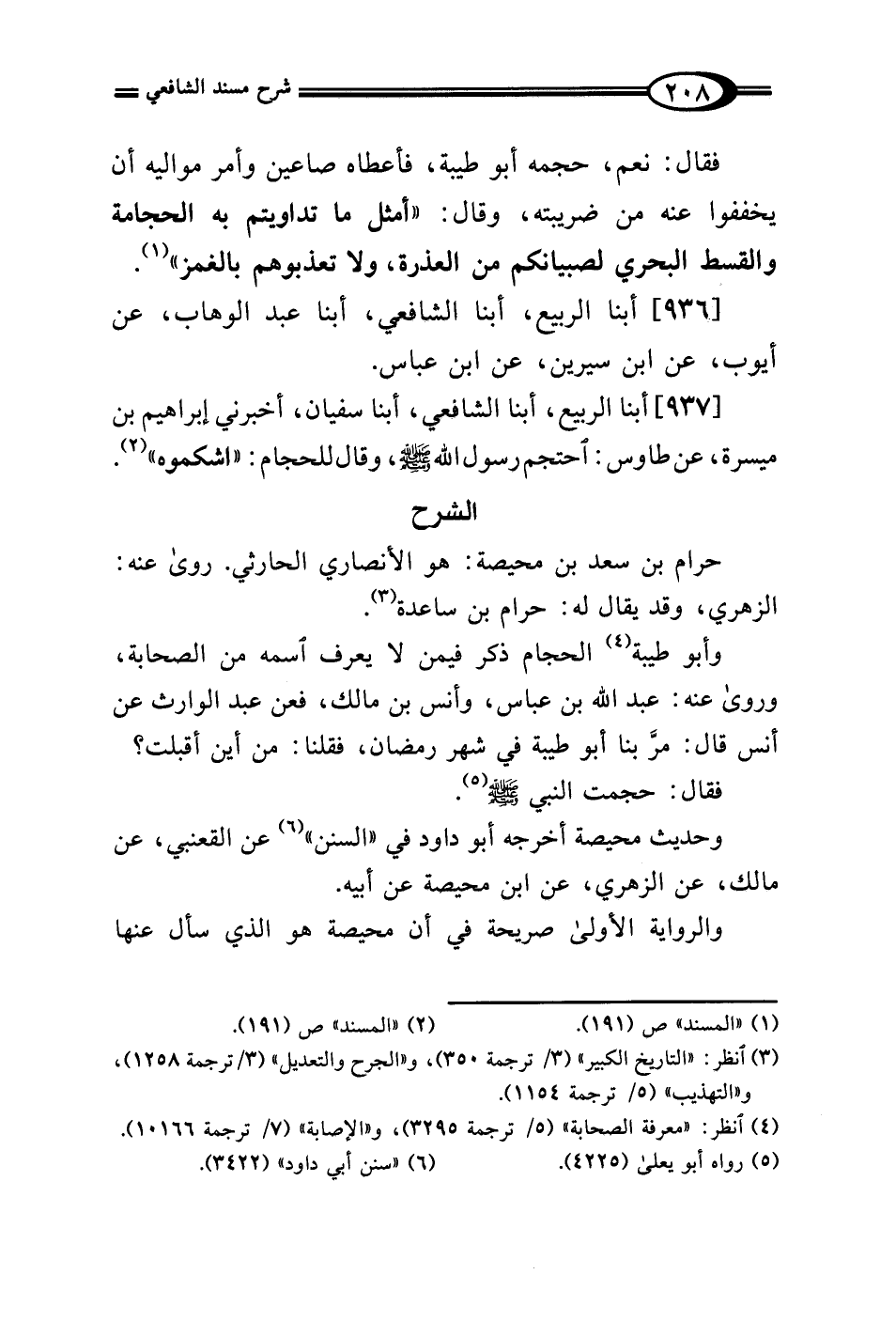 [937] أبنا الربيع، أبنا الشافعي، أبنا سفيان، أخبرني إبراهيم بن ميسرة، عن طاوس: احتجم رسول الله - صلى الله عليه وسلم -، وقال للحجام: "اشكموه" (¬2).