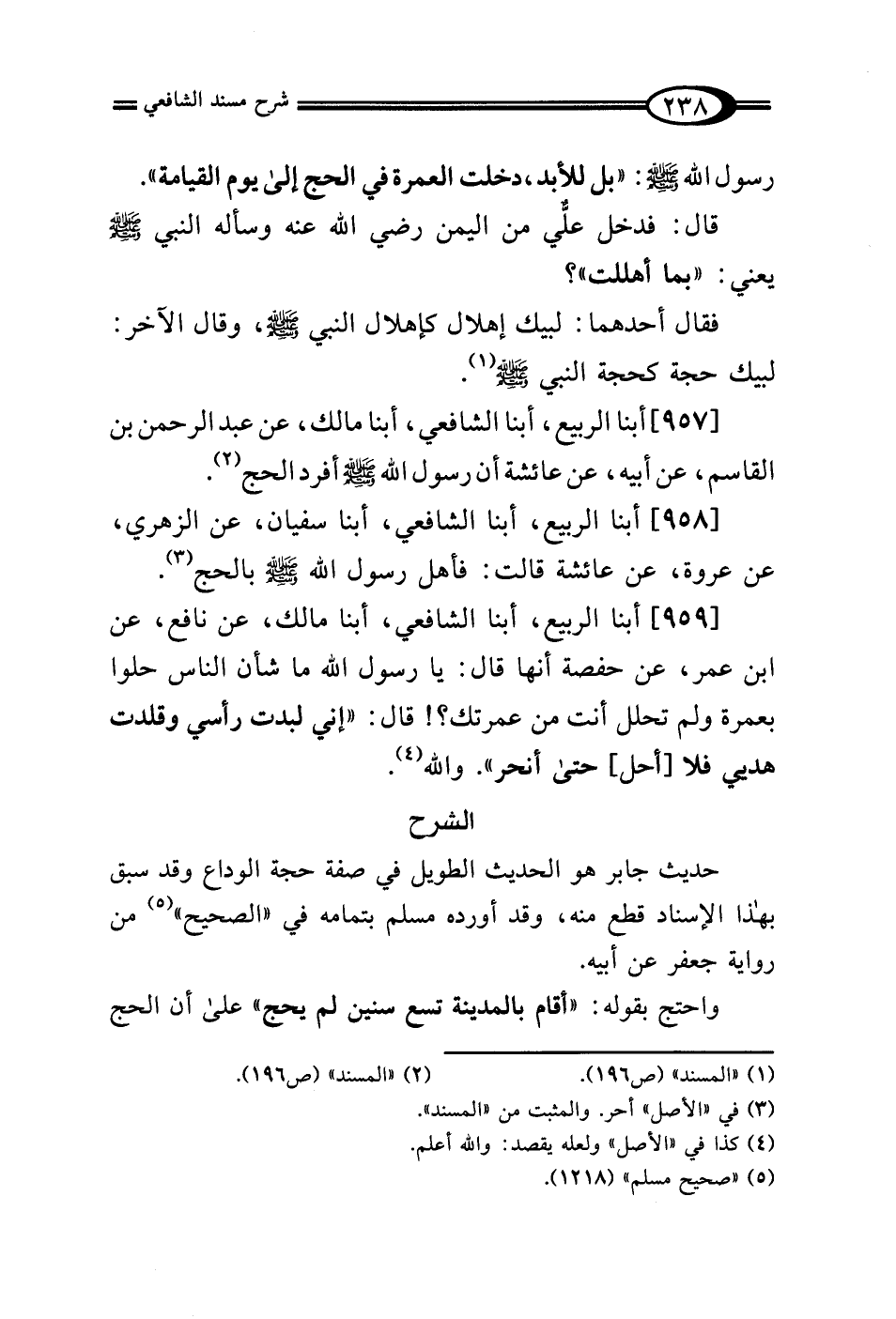 [958] أبنا الربيع، أبنا الشافعي، أبنا سفيان، عن الزهري، عن عروة، عن عائشة قالت: فأهل رسول الله - صلى الله عليه وسلم - بالحج (¬3).