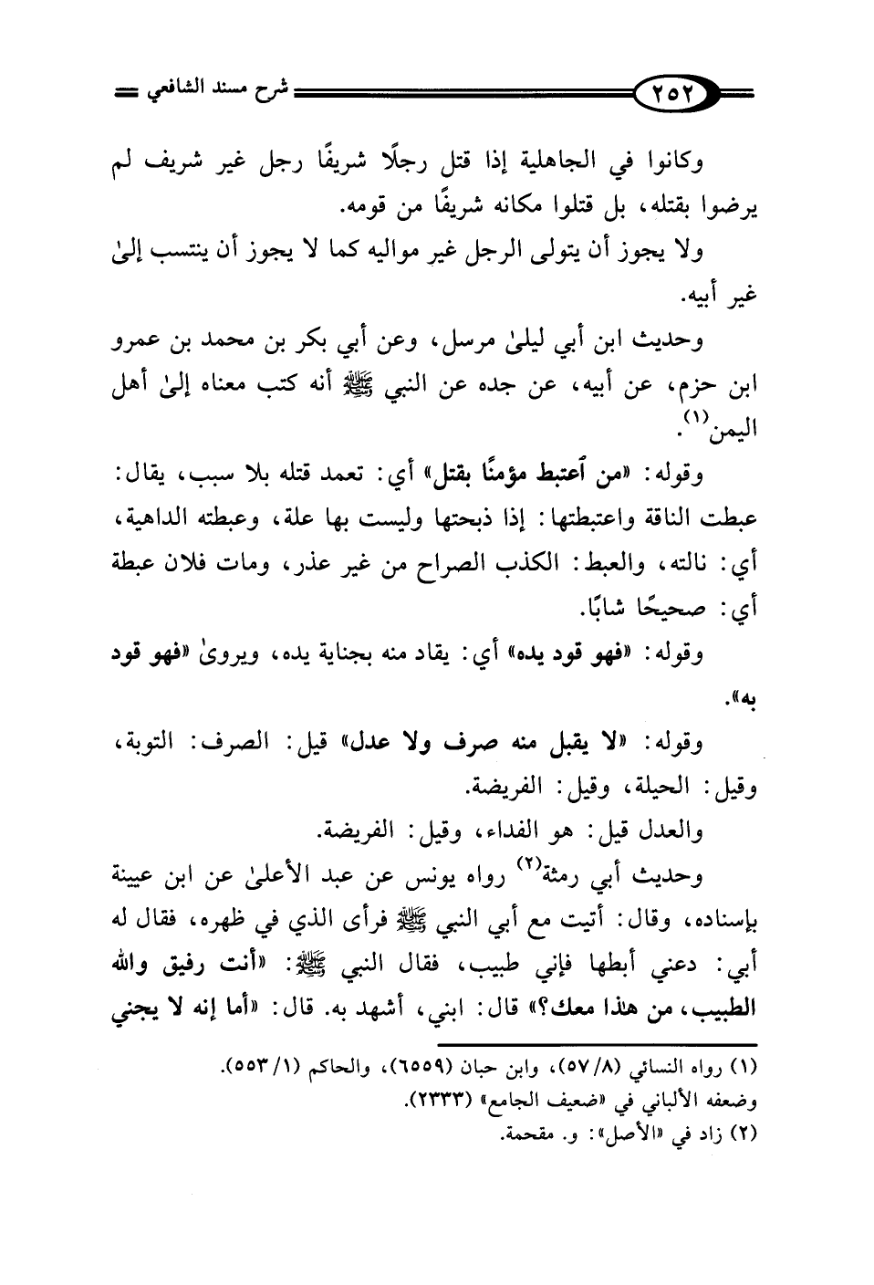 وكانوا في الجاهلية إذا قتل رجلًا شريفًا رجل غير شريف لم يرضوا بقتله، بل قتلوا مكانه شريفًا من قومه.