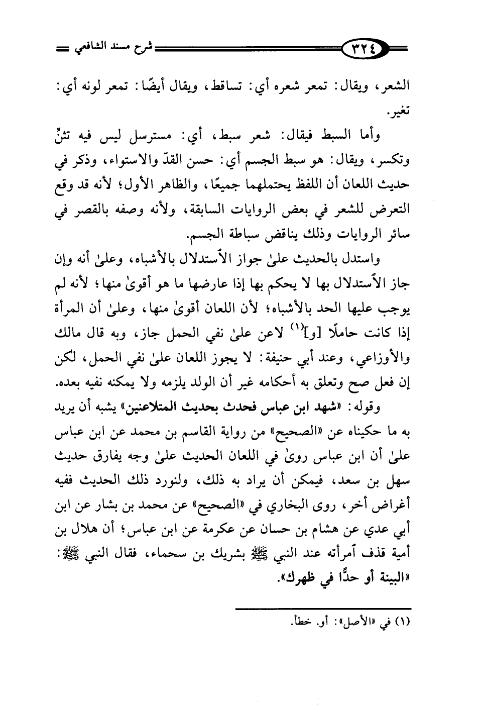 وأما السبط فيقال: شعر سبط، أي: مسترسل ليس فيه تثنِّ وتكسر، ويقال: هو سبط الجسم أي: حسن القدّ والاستواء، وذكر في حديث اللعان أن اللفظ يحتملهما جميعًا، والظاهر الأول؛ لأنه قد وقع التعرض للشعر في بعض الروايات السابقة، ولأنه وصفه بالقصر في سائر الروايات وذلك يناقض سباطة الجسم.