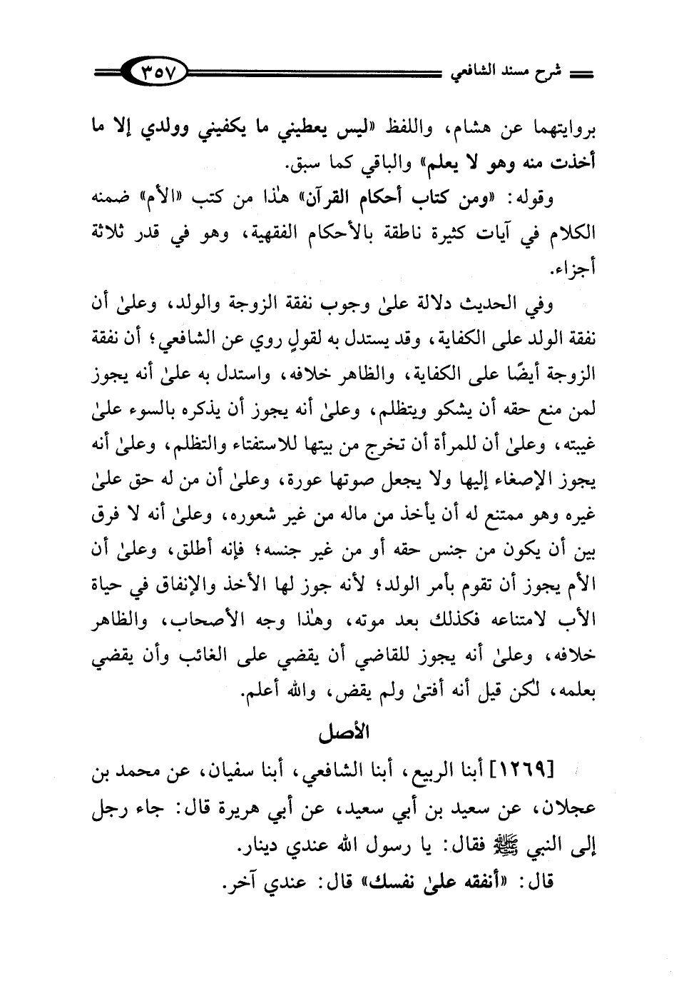 [1269] أبنا الربيع، أبنا الشافعي، أبنا سفيان، عن محمَّد بن عجلان، عن سعيد بن أبي سعيد، عن أبي هريرة قال: جاء رجل إلى النبي - صلى الله عليه وسلم - فقال: يا رسول الله - صلى الله عليه وسلم - عندي دينار.