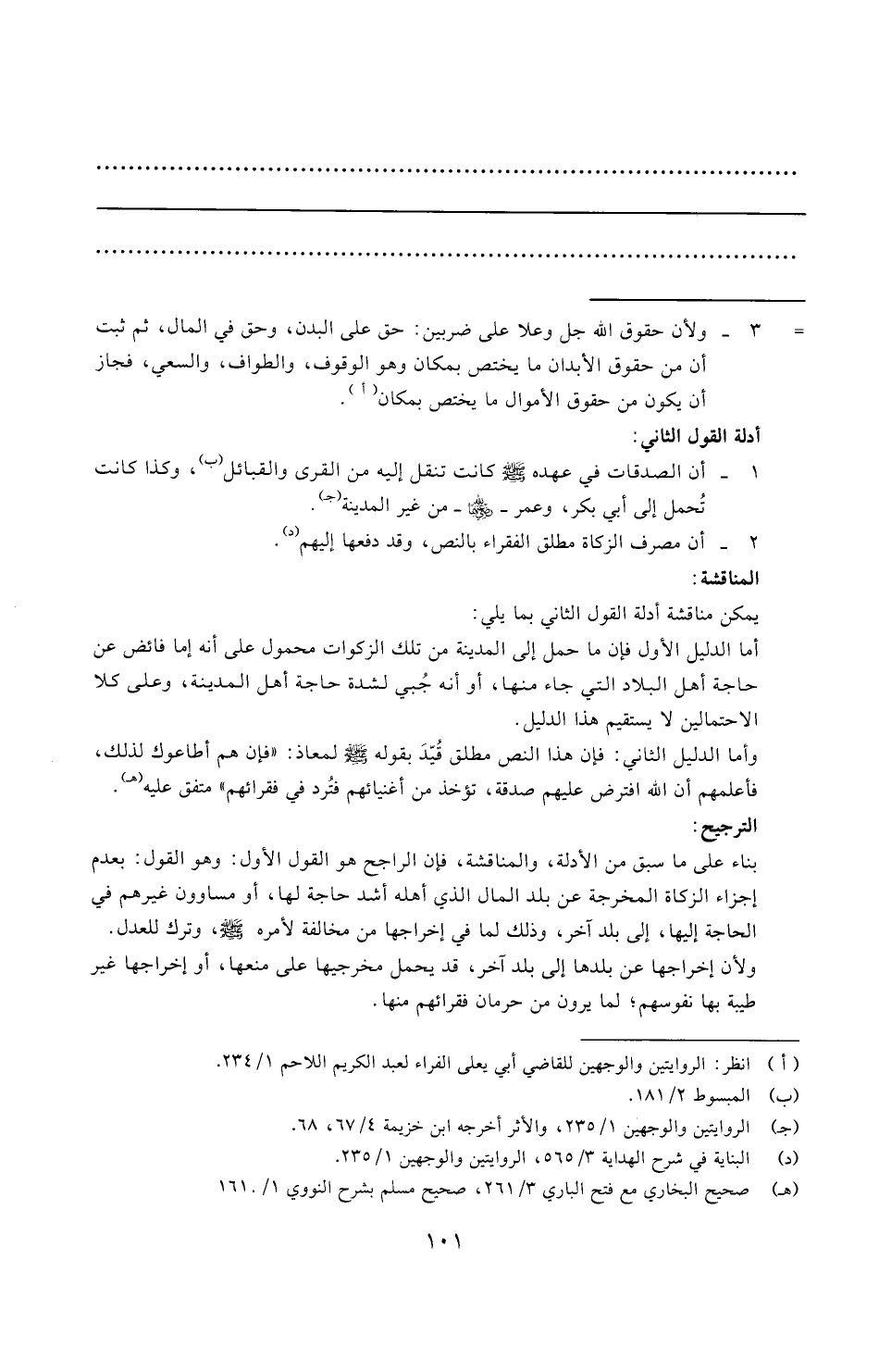 ١ - أن الصدقات في عهده -صلى الله عليه وسلم- كانت تنقل إليه من القرى والقبائل (ب)، وكذا كانت تُحمل إلى أبي بكر، وعمر -رضي الله عنهما- من غير المدينة (جـ).