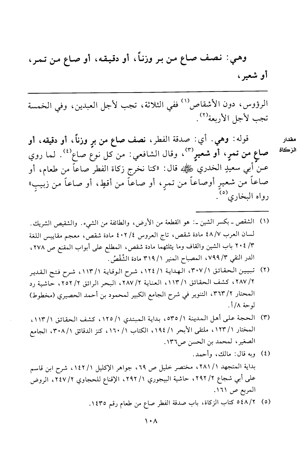 (¬٥) ٢/ ٥٤٨ كتاب الزكاة، باب صدقة الفطر صاع من طعام رقم ١٤٣٥.