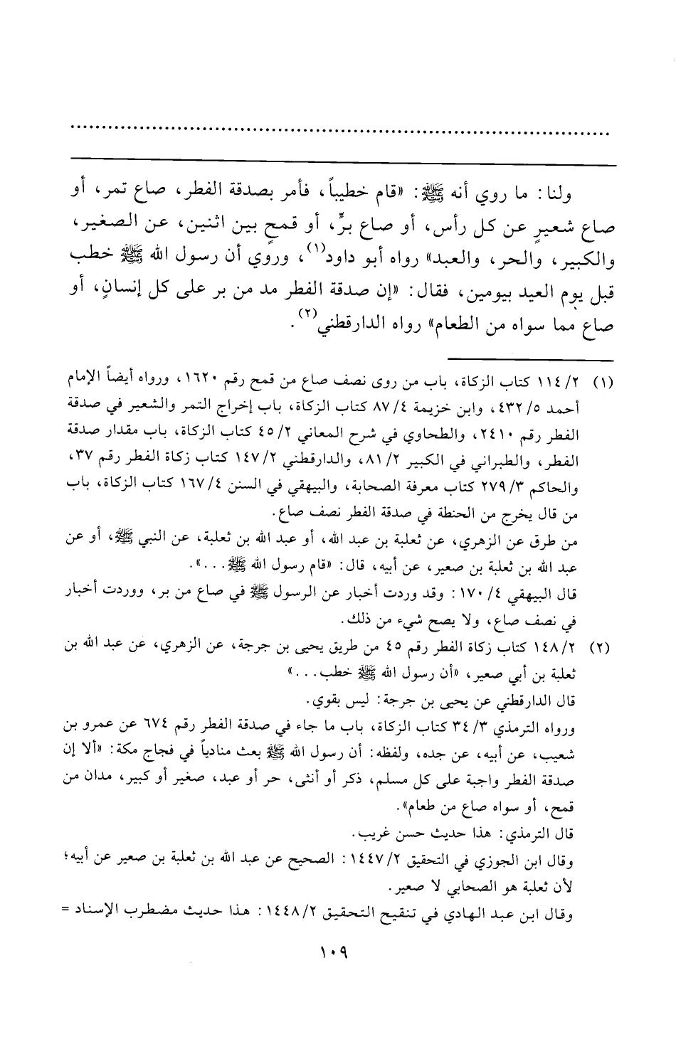 (¬٢) ٢/ ١٤٨ كتاب زكاة الفطر رقم ٤٥ من طريق يحيى بن جرجة، عن الزهري، عن عبد الله بن ثعلبة بن أبي صعير، "أن رسول الله -صلى الله عليه وسلم- خطب ... ".