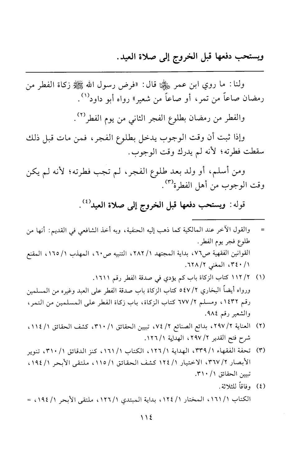 (¬٢) العناية ٢/ ٢٩٧، بدائع الصنائع ٢/ ٧٤، تبيين الحقائق ١/ ٣١٠، كشف الحقائق ١/ ١١٤، شرح فتح القدير ٢/ ٢٩٧، الهداية ١/ ١٢٦.