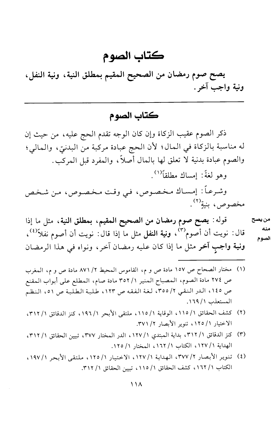 (¬٤) تنوير الأبصار ٢/ ٣٧٧، الهداية ١/ ١٢٧، الاختيار ١/ ١٢٥، ملتقى الأبحر ١/ ١٩٧، الكتاب ١/ ١٦٢، كشف الحقائق ١/ ١١٥، تبيين الحقائق ١/ ٣١٢.