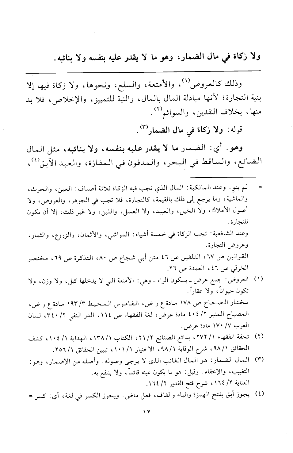 (¬٣) المال الضمار: هو المال الغائب الذي لا يرجى وصوله. وأصله من الإضمار، وهو: التغييب، والإخفاء. وقيل: هو ما يكون عينه قائمًا، ولا ينتفع به.