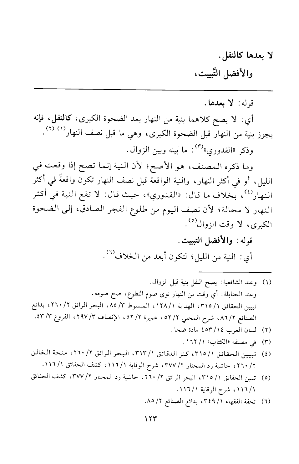 (¬٥) تبيين الحقائق ١/ ٣١٥، البحر الرائق ٢/ ٢٦٠، حاشية رد المحتار ٢/ ٣٧٧، كشف الحقائق ١/ ١١٦، شرح الوقاية ١/ ١١٦.