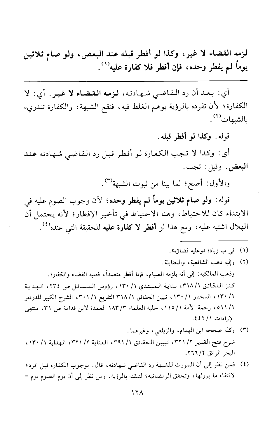 أي: بعد أن رد القاضي شهادته، لزمه القضاء لا غير. أي: لا الكفارة؛ لأن تفرده بالرؤية يوهم الغلط فيه، فتقع الشبهة، والكفارة تندريء بالشبهات (¬٢).