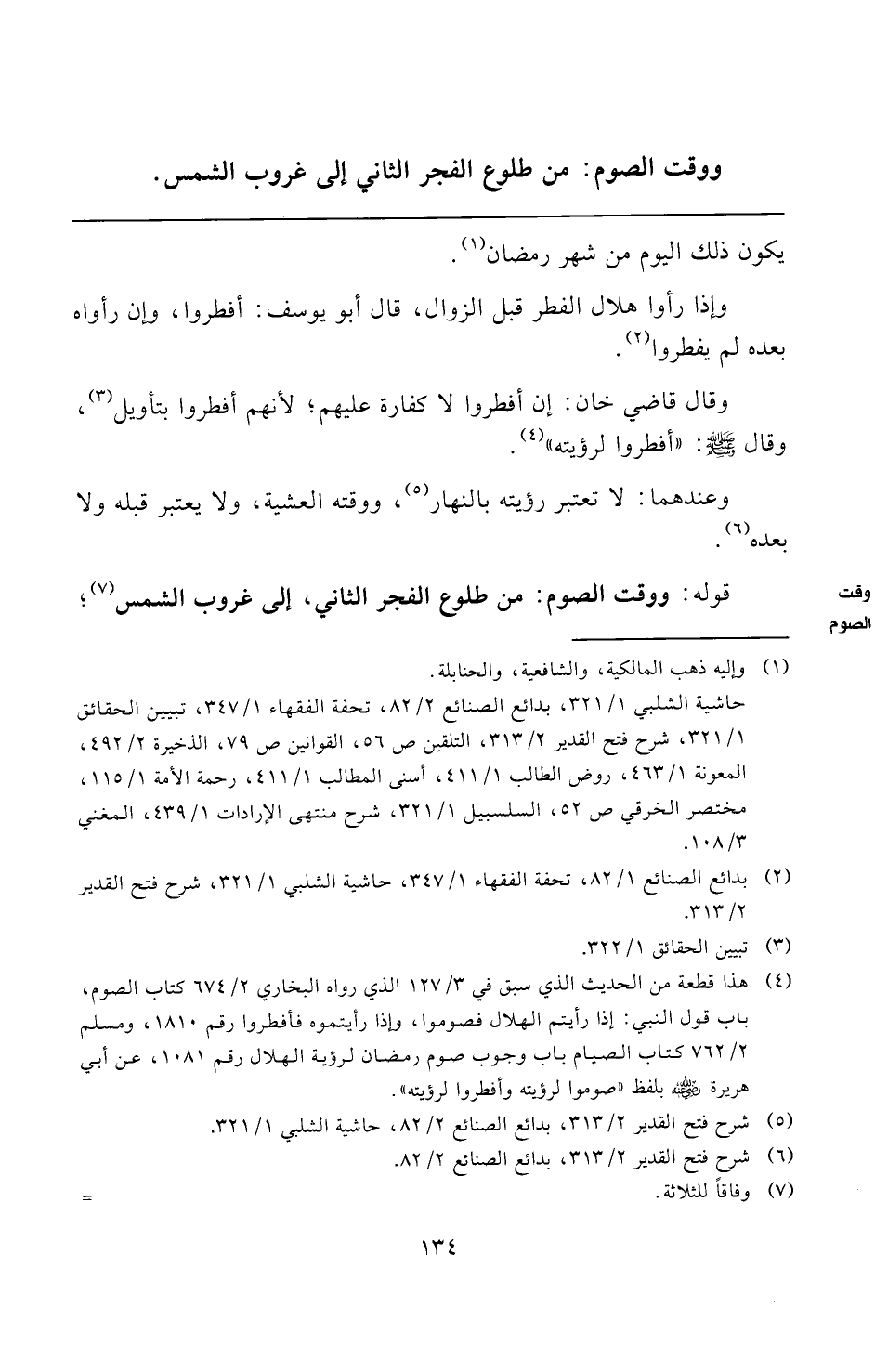(¬٥) شرح فتح القدير ٢/ ٣١٣، بدائع الصنائع ٢/ ٨٢، حاشية الشلبي ١/ ٣٢١.