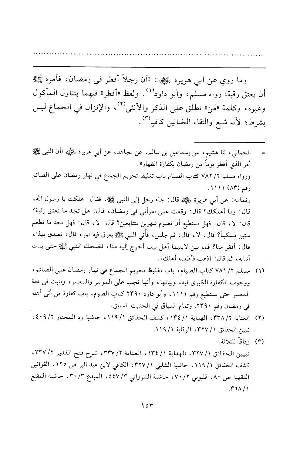 (¬٢) العناية ٢/ ٣٣٨، الهداية ١/ ١٣٤، كشف الحقائق ١/ ١١٩، حاشية رد المحتار ٢/ ٤٠٩، تبيين الحقائق ١/ ٣٢٧، الوقاية ١/ ١١٩.