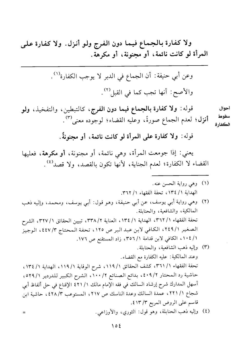 تحفة الفقهاء ١/ ٣٦١، كشف الحقائق ١/ ١١٩، شرح الوقاية ١/ ١١٩، الهداية ١/ ١٣٤، حاشية رد المحتار ٢/ ٤٠٩، بدائع الصنائع ٢/ ١٠٠، الشرح الكبير للدردير ١/ ٥٢٩، أسهل المدارك شرح إرشاد السالك في فقه الإمام مالك ١/ ٤٢١ الإقناع في حل ألفاظ أبي شجاع ١/ ٢٢١، عمدة السالك وعدة الناسك ص ٢١٧، المستوعب ٣/ ٤٢٨، حاشية ابن قاسم على الروض المربع ٣/ ٤١٣.