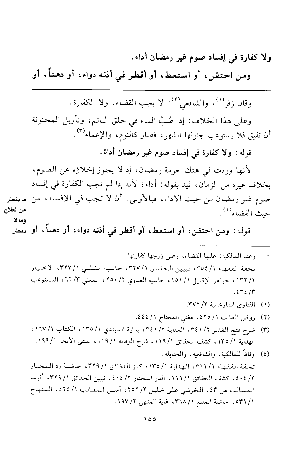 ومن احتقن، أو استعط، أو أقطر في أذنه دواء، أو دهنًا، أو