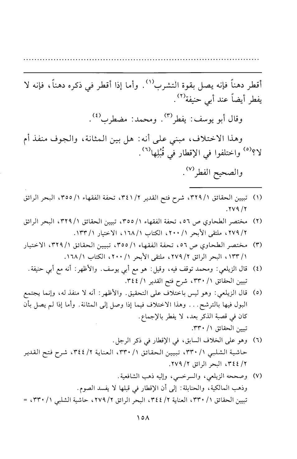 (¬١) تبيين الحقائق ١/ ٣٢٩، شرح فتح القدير ٢/ ٣٤١، تحفة الفقهاء ١/ ٣٥٥، البحر الرائق ٢/ ٢٧٩.