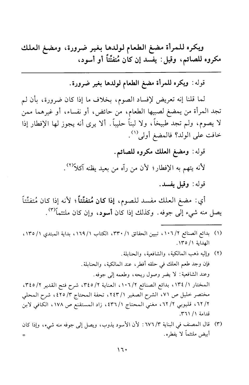أي: مضغ العلك مفسد للصوم، إذا كان مُتفتِّتًا؛ لأنه إذا كان مُتفتِّتًا يصل منه شيء إلى جوفه. وكذلك إذا كان أسود، وإن كان ملتئمًا (¬٣).