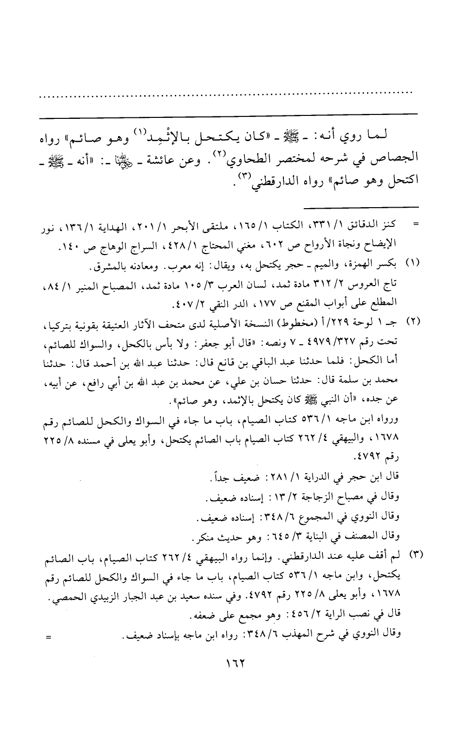 (¬٢) جـ ١ لوحة ٢٢٩/ أ (مخطوط) النسخة الأصلية لدى متحف الآثار العتيقة بقونية بتركيا، تحت رقم ٣٢٧/ ٤٩٧٩ - ٧ ونصه: "قال أبو جعفر: ولا بأس بالكحل، والسواك للصائم، أما الكحل: فلما حدثنا عبد الباقي بن قانع قال: حدثنا عبد الله بن أحمد قال: حدثنا محمد بن سلمة قال: حدثنا حسان بن علي، عن محمد بن عبد الله بن أبي رافع، عن أبيه، عن جده، "أن النبي -صلى الله عليه وسلم- كان يكتحل بالإثمد، وهو صائم".