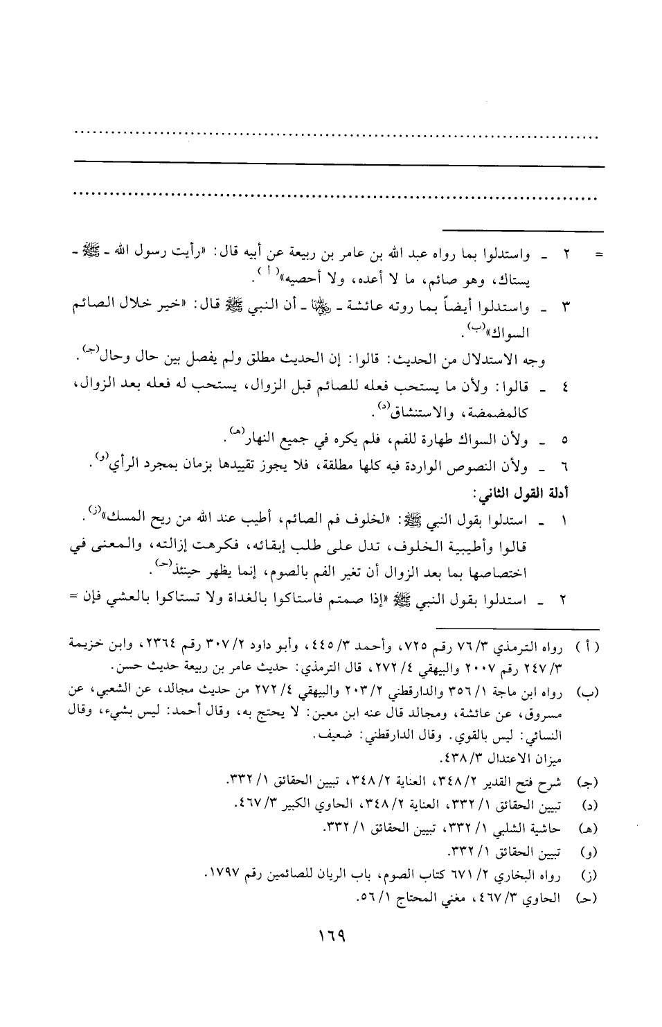 = ٢ - واستدلوا بما رواه عبد الله بن عامر بن ربيعة عن أبيه قال: "رأيت رسول الله -صلى الله عليه وسلم- يستاك، وهو صائم، ما لا أعده، ولا أحصيه" (١).