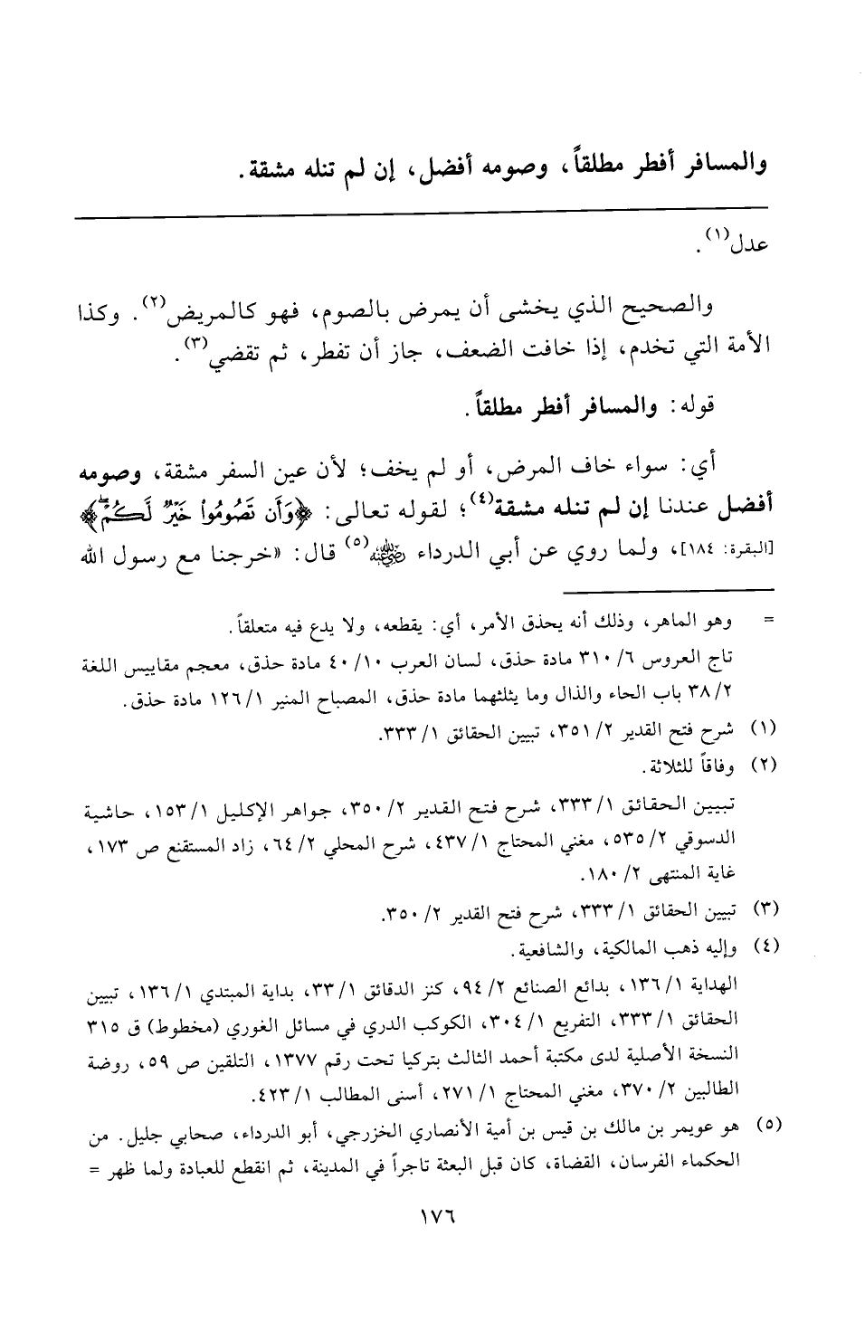 أي: سواء خاف المرض، أو لم يخف؛ لأن عين السفر مشقة، وصومه أفضل عندنا إن لم تنله مشقة (¬٤)؛ لقوله تعالى: {وَأَنْ تَصُومُوا خَيْرٌ لَكُمْ} [البقرة: ١٨٤]، ولما روي عن أبي الدرداء -رضي الله عنه- (¬٥) قال: "خرجنا مع رسول الله