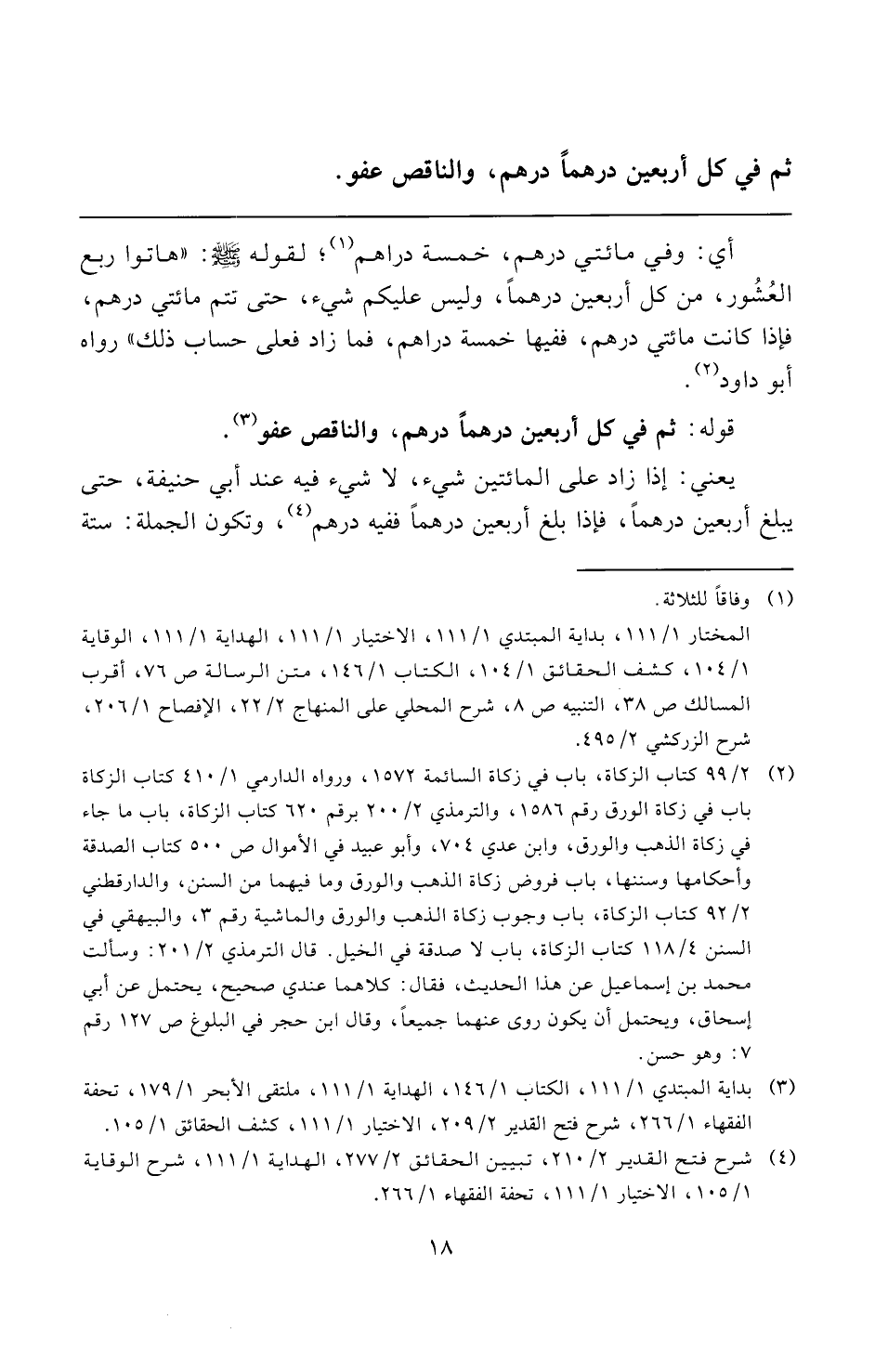 (¬٤) شرح فتح القدير ٢/ ٢١٠، تبيين الحقائق ٢/ ٢٧٧، الهداية ١/ ١١١، شرح الوقاية ١/ ١٠٥، الاختيار ١/ ١١١، تحفة الفقهاء ١/ ٢٦٦.