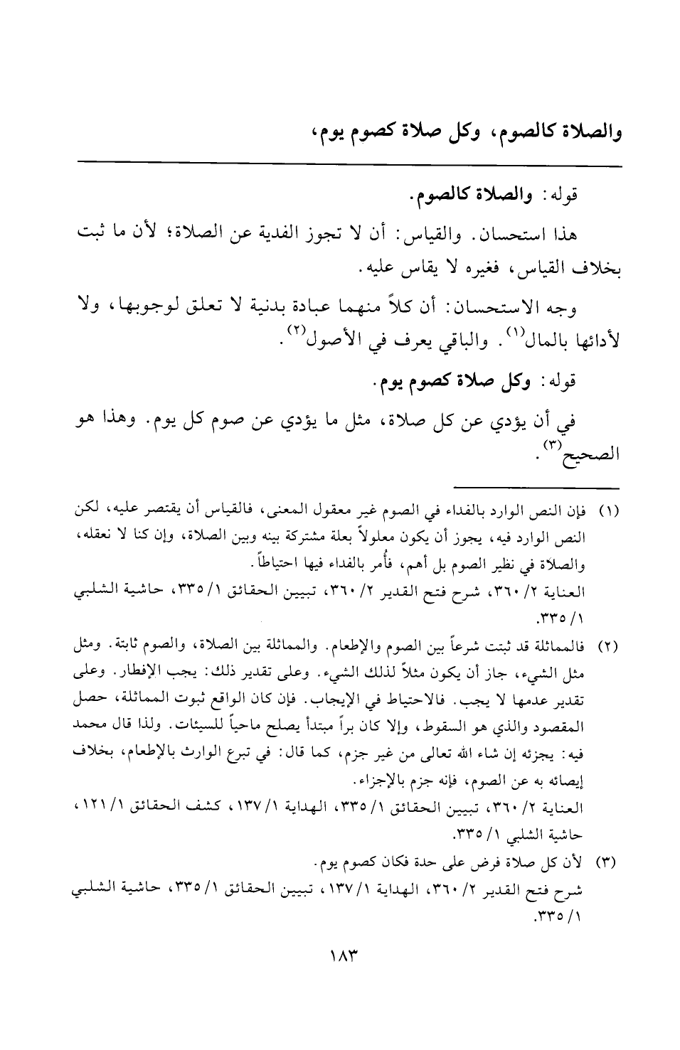 العناية ٢/ ٣٦٠، شرح فتح القدير ٢/ ٣٦٠، تبيين الحقائق ١/ ٣٣٥، حاشية الشلبي ١/ ٣٣٥.