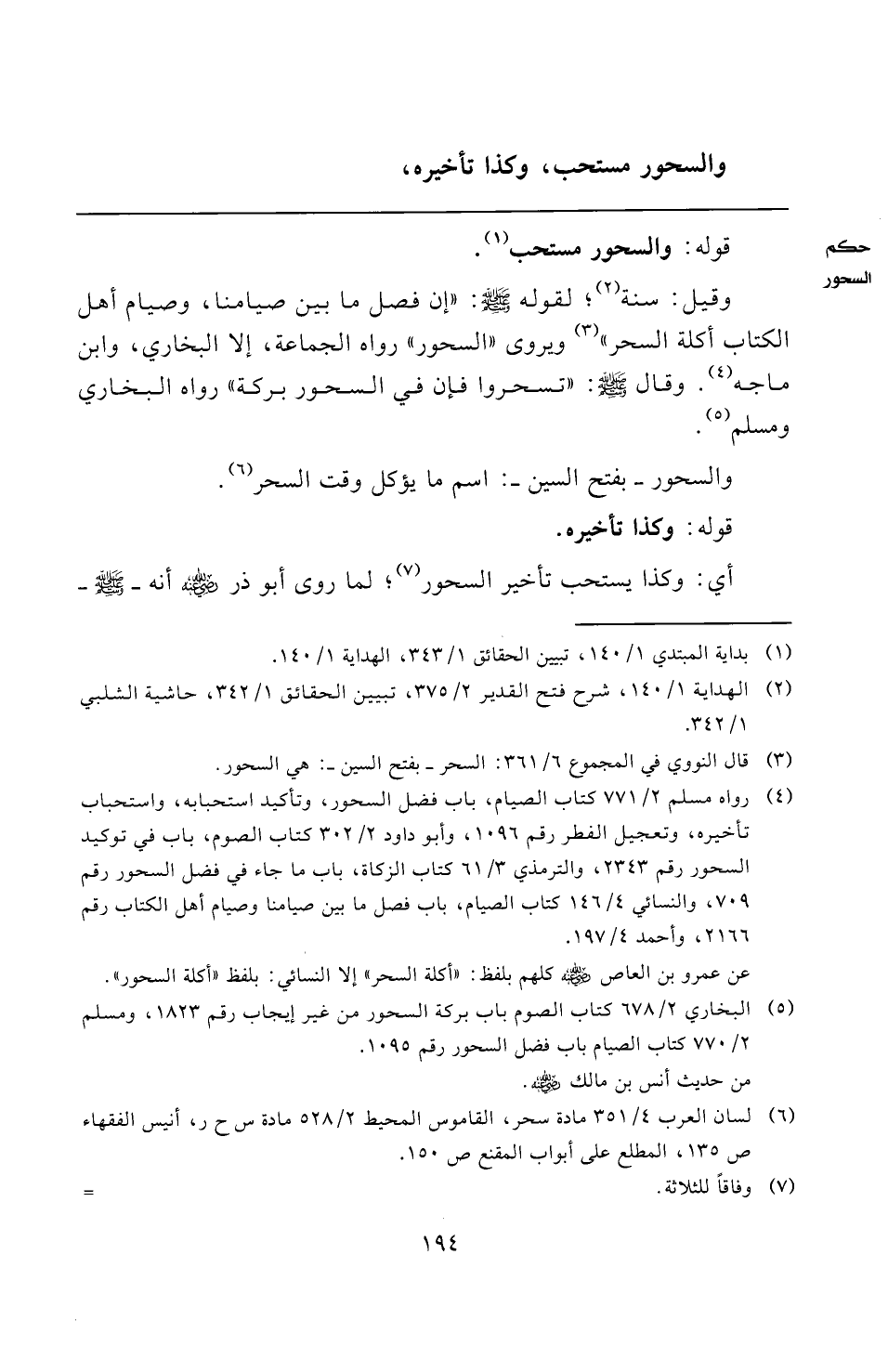 (¬٣) قال النووي في المجموع ٦/ ٣٦١: السحر -بفتح السين-: هي السحور.