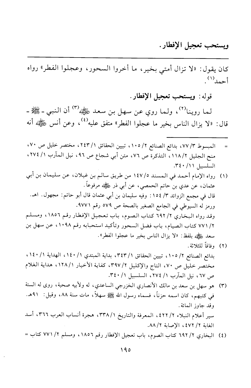 (¬٤) البخاري ٢/ ٦٩٢ كتاب الصوم، باب تعجيل الإفطار رقم ١٨٥٦، ومسلم ٢/ ٧٧١ كتاب =