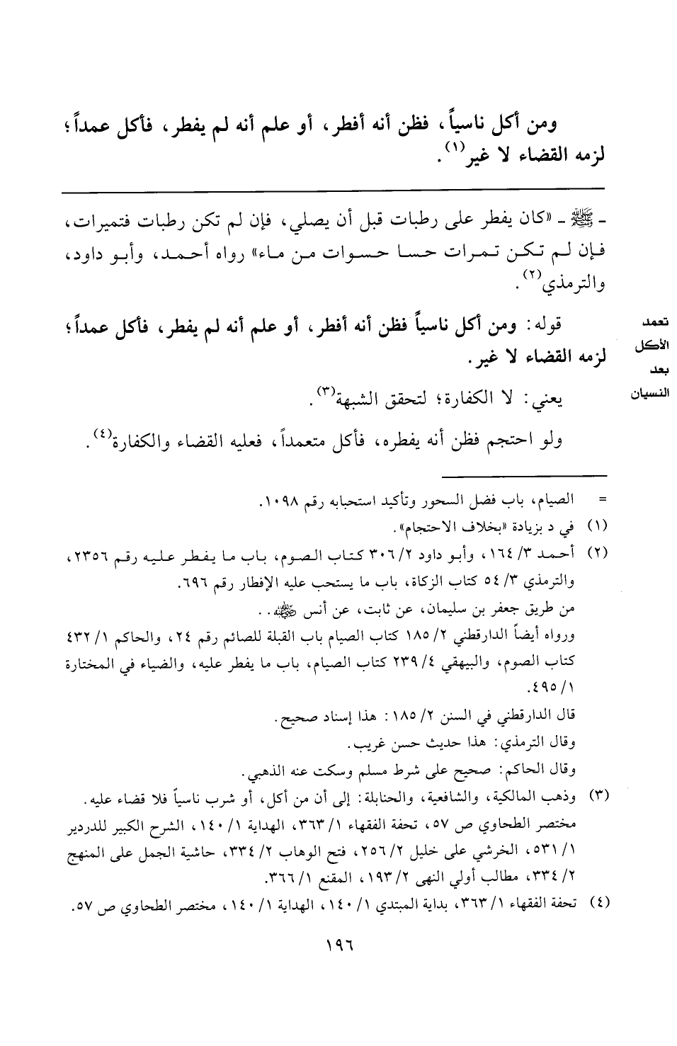 [تعمد الأكل بعد النسيان]