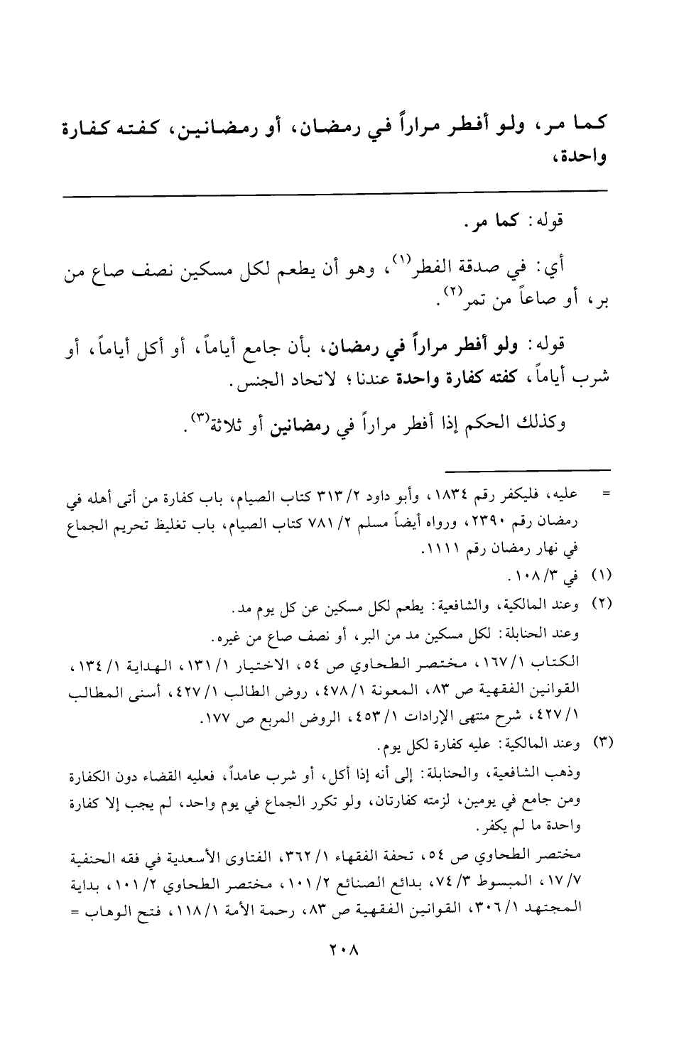 وكذلك الحكم إذا أفطر مرارًا في رمضانين أو ثلاثة (¬٣).