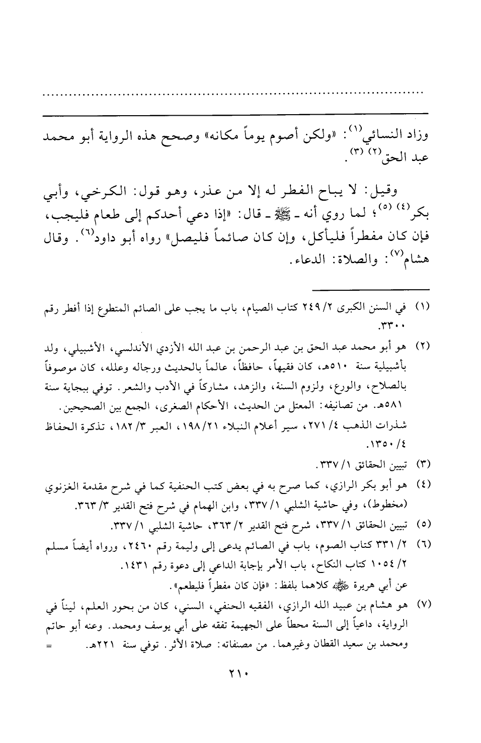 (¬٦) ٢/ ٣٣١ كتاب الصوم، باب في الصائم يدعى إلى وليمة رقم ٢٤٦٠، ورواه أيضًا مسلم ٢/ ١٠٥٤ كتاب النكاح، باب الأمر بإجابة الداعي إلى دعوة رقم ١٤٣١.