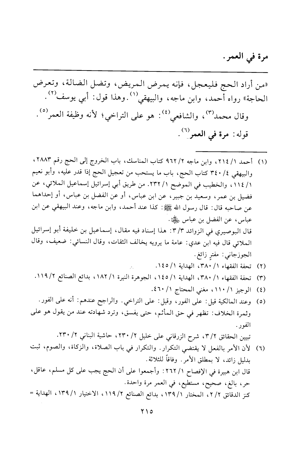 " من أراد الحج فليعجل، فإنه يمرض المريض، وتضل الضالة، وتعرض الحاجة" رواه أحمد، وابن ماجه، والبيهقي (¬١). وهذا قول: أبي يوسف (¬٢).