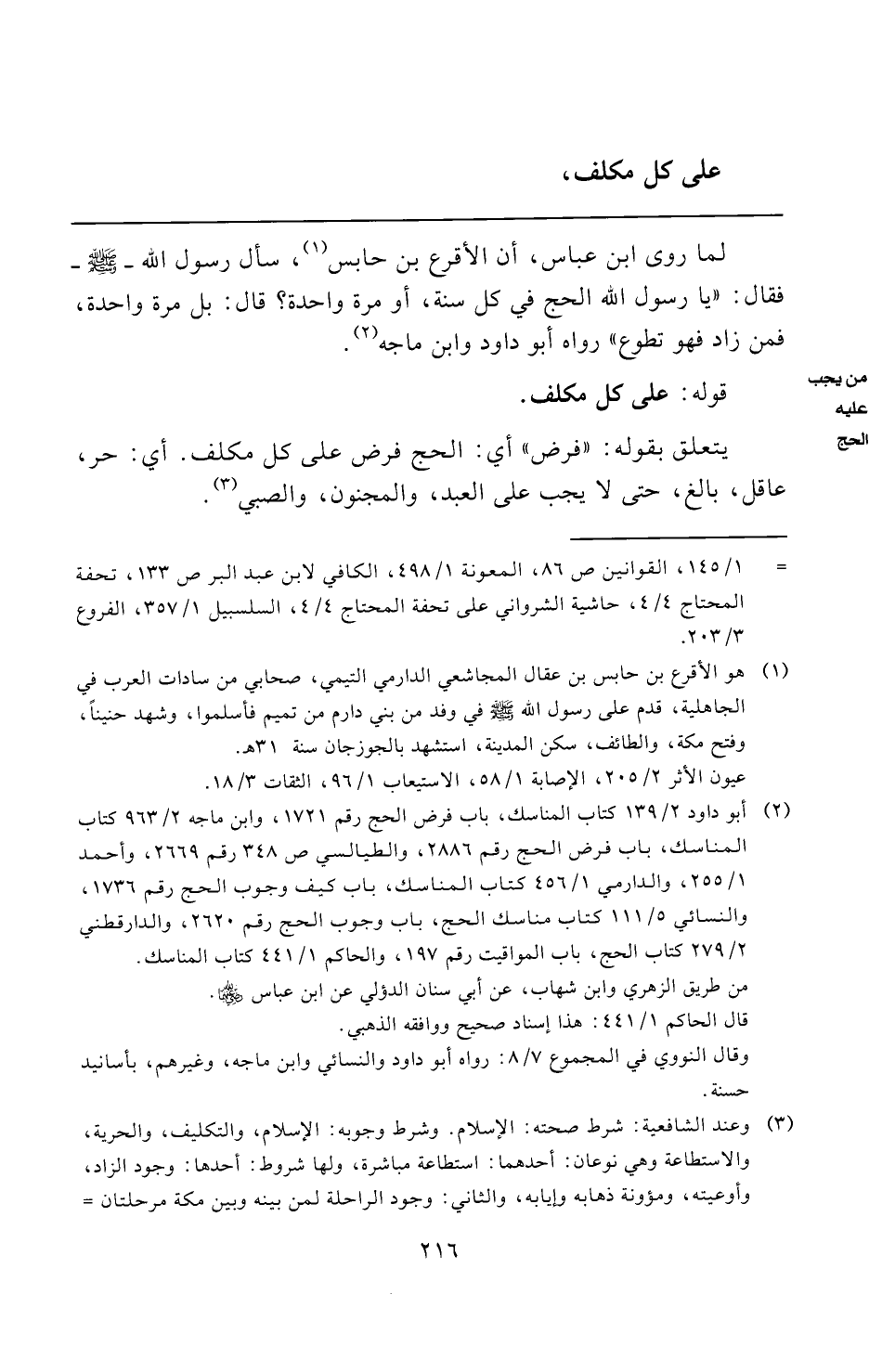 (¬٢) أبو داود ٢/ ١٣٩ كتاب المناسك، باب فرض الحج رقم ١٧٢١، وابن ماجه ٢/ ٩٦٣ كتاب المناسك، باب فرض الحج رقم ٢٨٨٦، والطيالسي ص ٣٤٨ رقم ٢٦٦٩، وأحمد ١/ ٢٥٥، والدارمي ١/ ٤٥٦ كتاب المناسك، باب كيف وجوب الحج رقم ١٧٣٦، والنسائي ٥/ ١١١ كتاب مناسك الحج، باب وجوب الحج رقم ٢٦٢٠، والدارقطني ٢/ ٢٧٩ كتاب الحج، باب المواقيت رقم ١٩٧، والحاكم ١/ ٤٤١ كتاب المناسك.