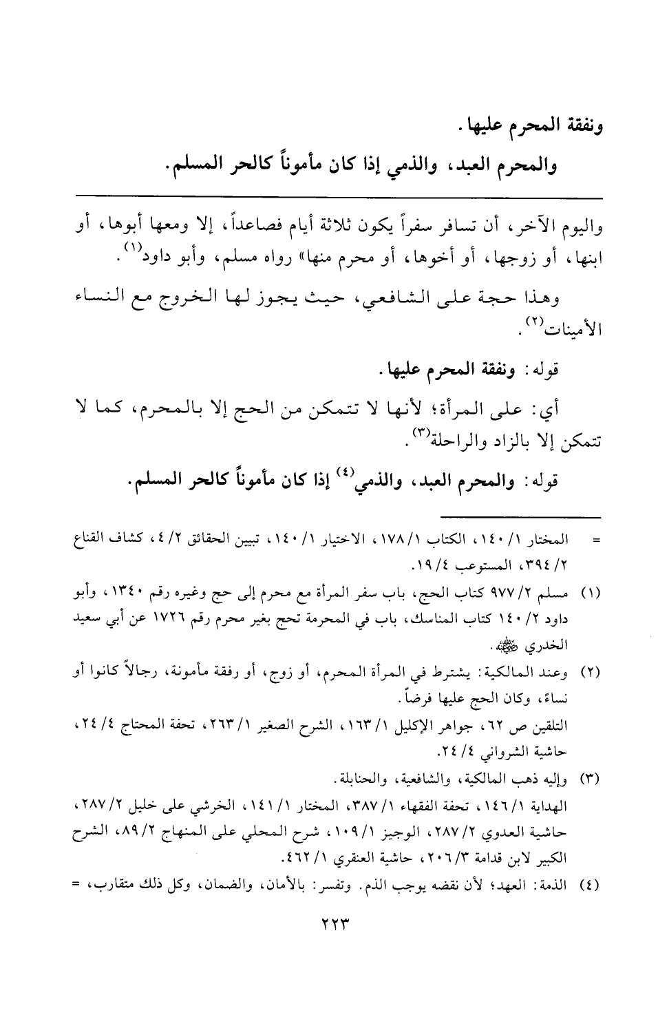 (¬١) مسلم ٢/ ٩٧٧ كتاب الحج، باب سفر المرأة مع محرم إلى حج وغيره رقم ١٣٤٠، وأبو داود ٢/ ١٤٠ كتاب المناسك، باب في المحرمة تحج بغير محرم رقم ١٧٢٦ عن أبي سعيد الخدري -رضي الله عنه-.