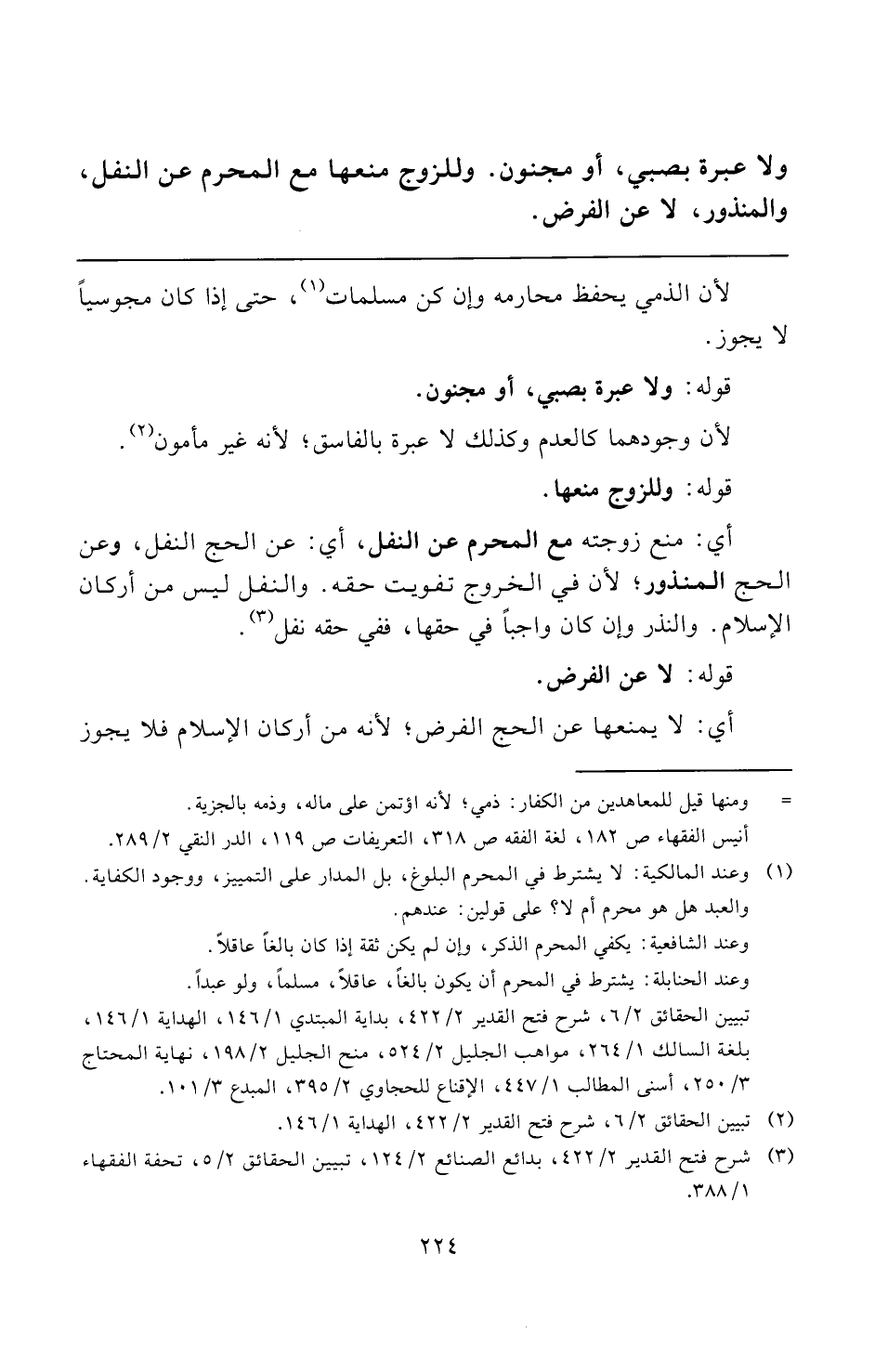 (¬٣) شرح فتح القدير ٢/ ٤٢٢، بدائع الصنائع ٢/ ١٢٤، تبيين الحقائق ٢/ ٥، تحفة الفقهاء ١/ ٣٨٨.